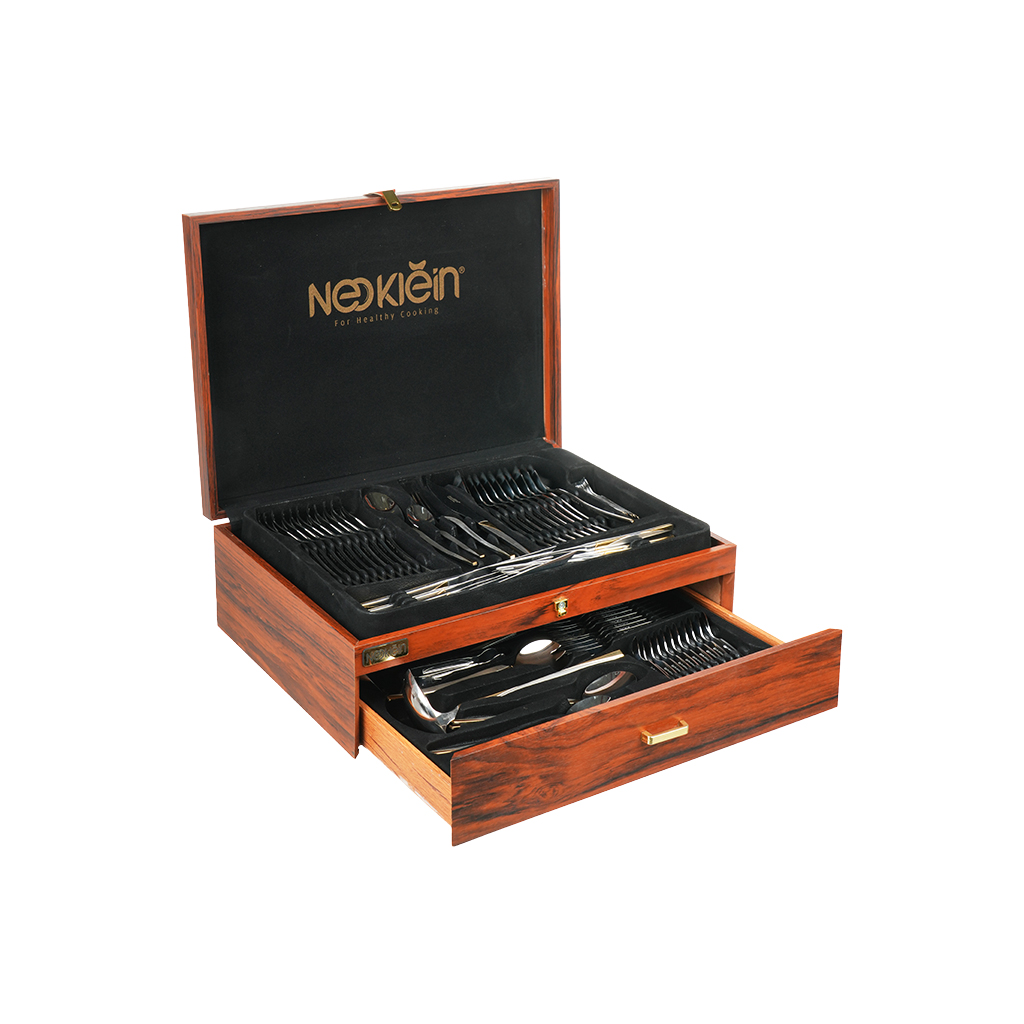 طقم أدوات مائدة ستانلس ستيل نيوكلاين، 86 قطعة - فضي ذهبي