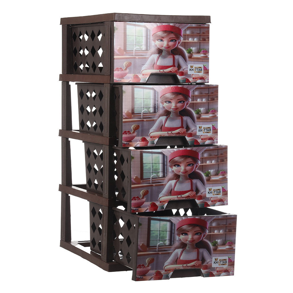 ترولي تخزين بلاستيك ليو اكسا، 4 درج - روز