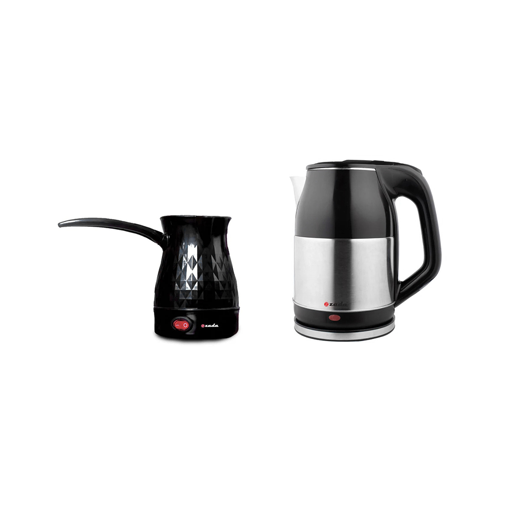 العلامة التجارية : زادا النوع: غلاية. اللون: أسود فضي رقم الموديل: ZKT-250SS. القوة الكهربائية: 1500 وات. السعة: 2.5 لتر. الضمان: سنة -------------------------------------------------------------------------------------------------------------------------------------------------------------------------------------------------------------------------------------------------------------------- العلامة التجارية: زادا النوع: صانعة قهوة اللون: أسود القوة الكهربائية: 350 وات السعة: 500 مل عن المنتج: قاعدة متصلة فعالة للغاية سهلة التنظيف سهلة الحمل آمنة الاستخدام جودة عالية الضمان: سنة