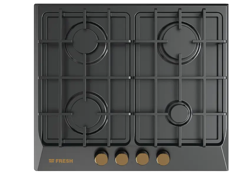 العلامة التجارية: فريش النوع: بوتجاز اللون: اسود رقم الموديل: 9860 عدد الشعلات: 4 غاز المقاس: 60 سم شعلات نحاس نظام أمان كامل الضمان: 5 سنوات