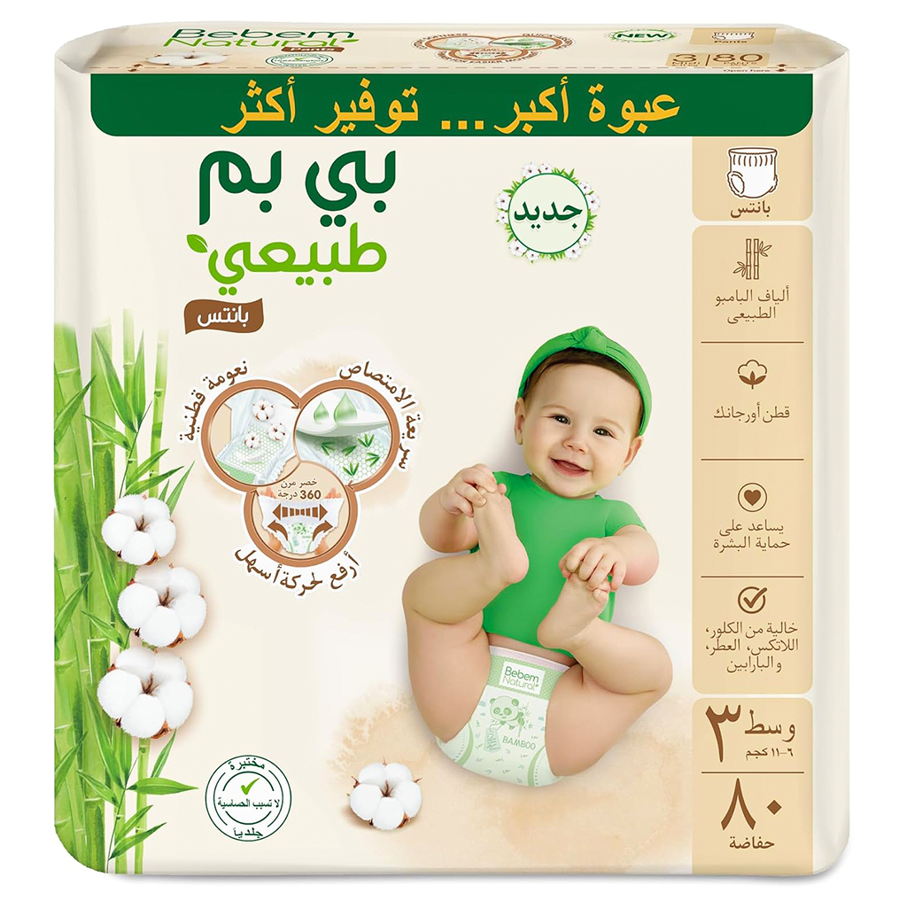 حفاضات اطفال بانتس بيبيم ناتشورال، مقاس 3 متوسط، وزن 6-11 كيلو جرام - 80 قطعة | Almorshedy Marts