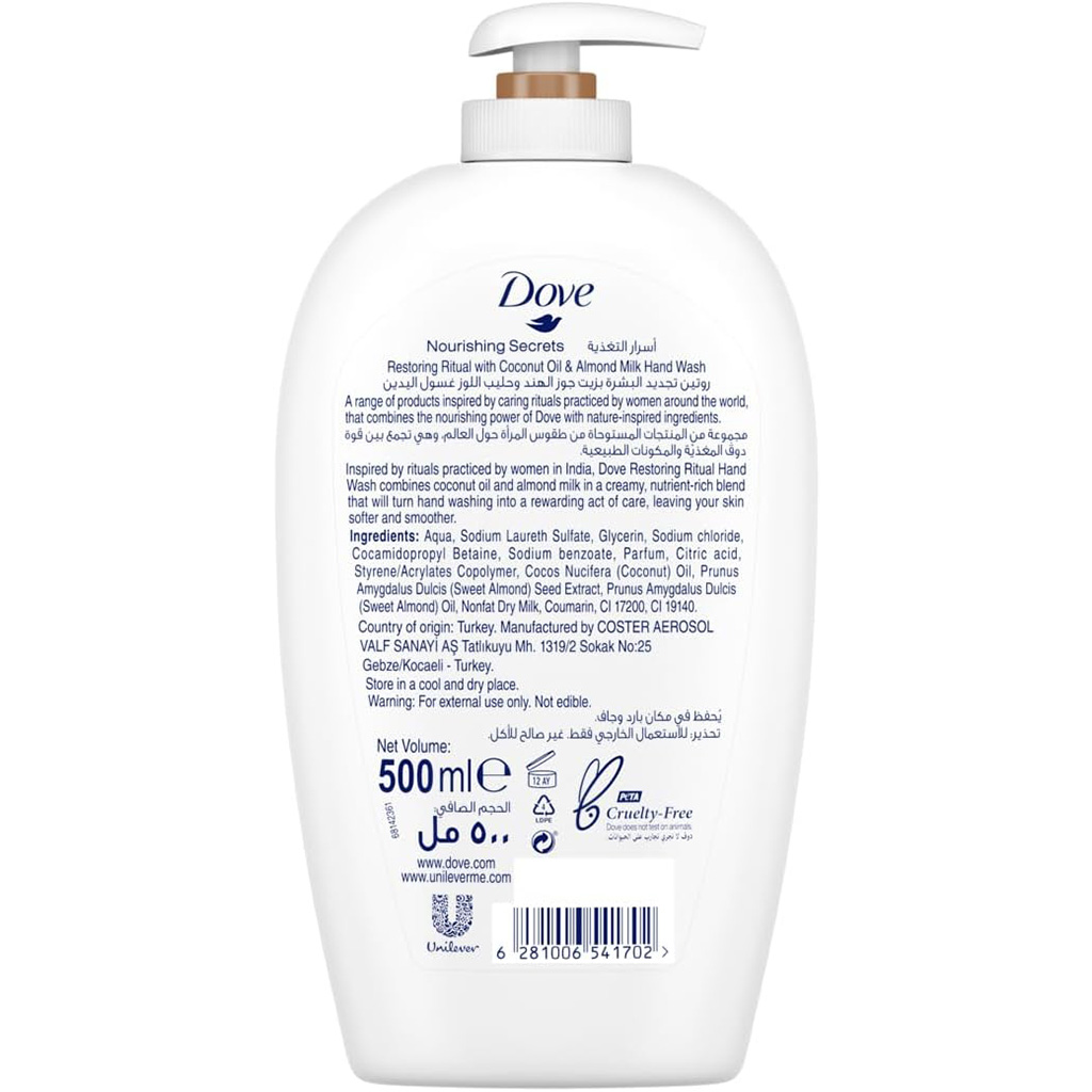 غسول اليدين نوريشينج سيكريتس دوف، بزيت جوز الهند وحليب اللوز - 500 مل | أسواق المرشدي