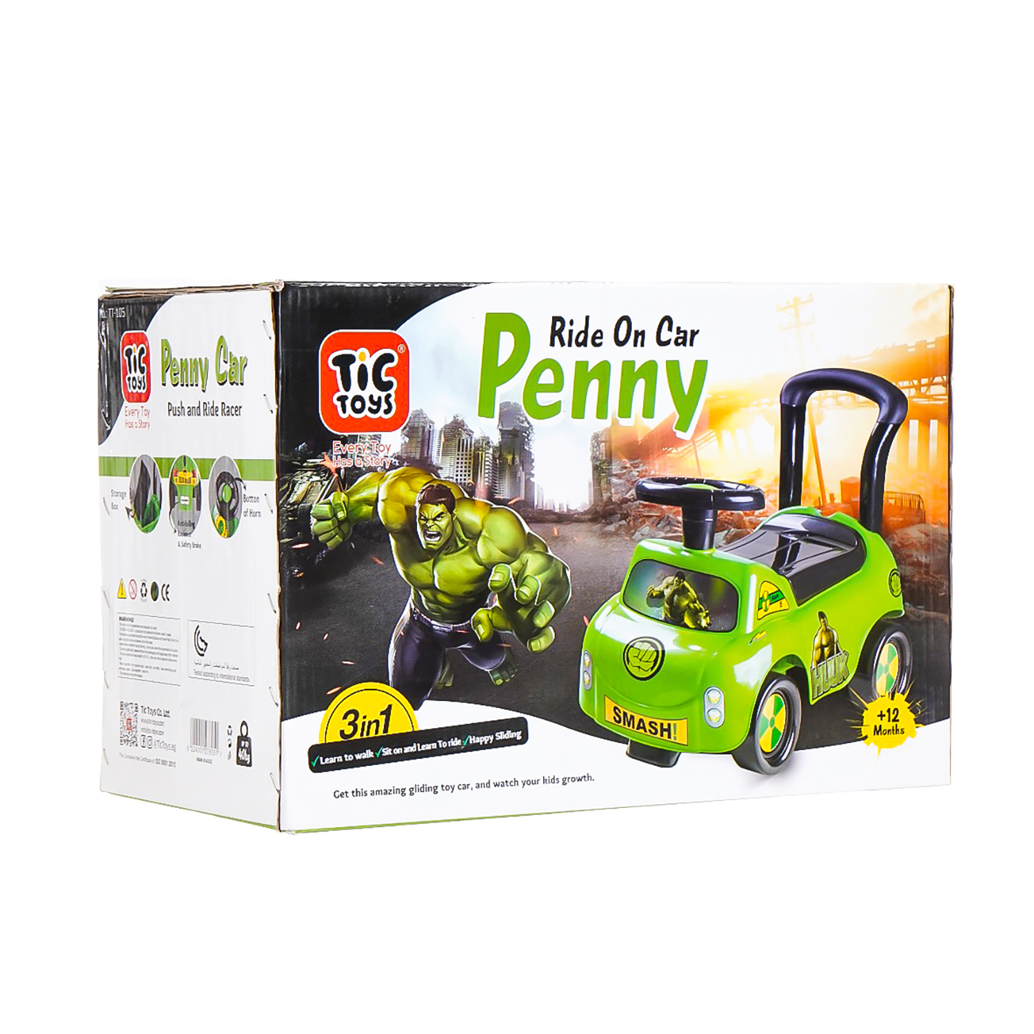 العلامة التجارية : تيك تويز النوع : زحافة اللون : أبيض الخامة : بلاستيك الفئة العمرية :أكبر من سنتين الفئة المستهدفة : للجنسين عدد القطع : 1 قطعة عن المنتج : تصميم واسع لهيكل السيارة مصمم بعناية فائقة بحجم ونسب مثالية ليوفر للأطفال تجربة قيادة أكثر راحة وأمانًا. يعزز التصميم القائم على الالتواء مرونة التوجيه وسلاسة الحركة، كما يساعد على تقوية عضلات الساق وتحسين القدرة على الحركة. يُقدم تعليم الحروف والأرقام من خلال موسيقى ممتعة، مما يجعل التعلم جزءًا ممتعًا من كل رحلة. يجمع بين الحركة والموسيقى والأضواء لتجربة لعب مسلية وغامرة. مصنوع من مواد آمنة للأطفال وهيكل ثابت لضمان رحلة آمنة في كل مرة. متين ليتحمل وزنًا يصل إلى 50 كجم، مما يجعله مناسبًا للأطفال. التحذيرات : أجزاء صغيرة، غير مناسبة للأطفال أقل من سنتين. يجب الابتعاد عن مصادر اللهب و أشعة الشمس وأي مؤثرات خارجية