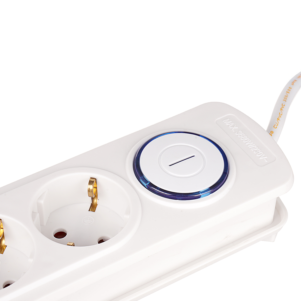 مشترك كهربائى اليوس، 3 مخرج فيشة ثنائية، 2 متر، 3680 وات - أبيض | Almorshedy Marts