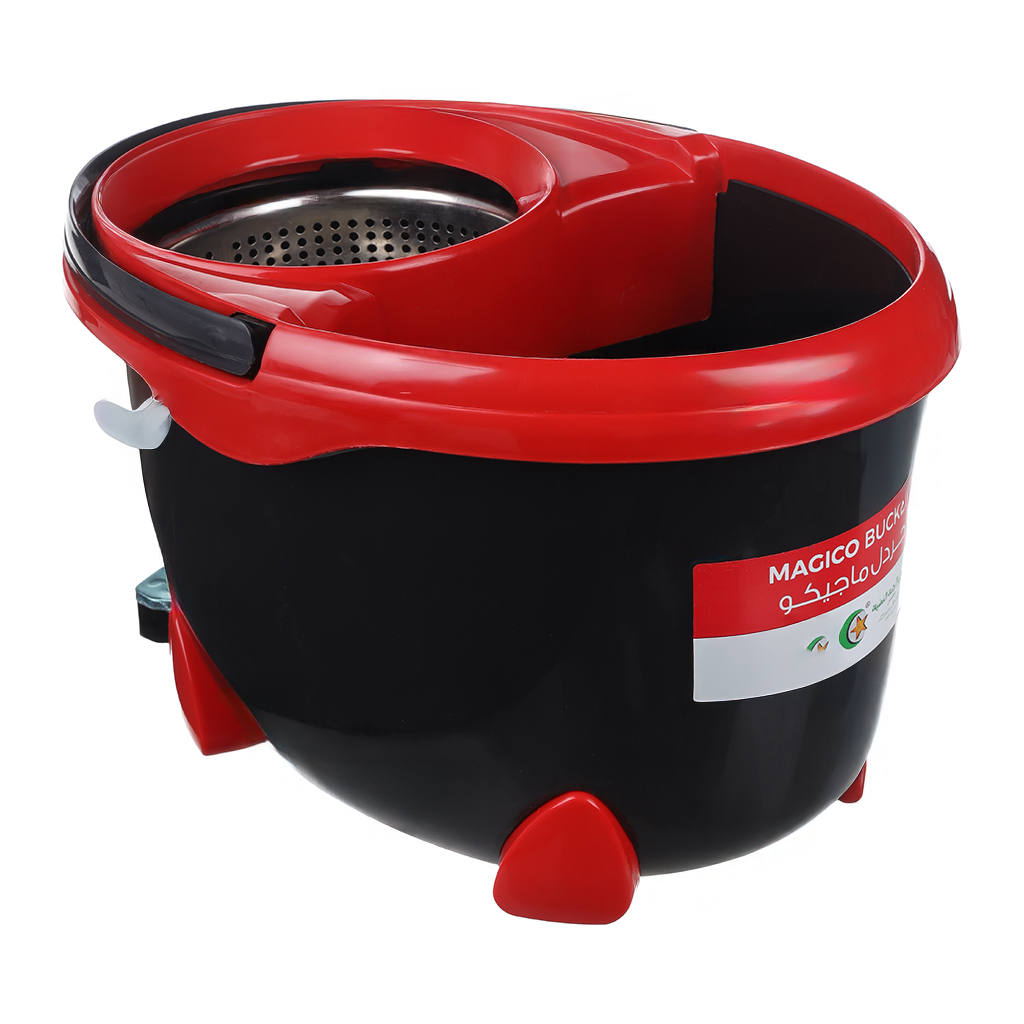 العلامة التجارية: الهلال والنجمة الفضية النوع: جردل عصر مع شرشوبة اللون: أسود أحمر اسم الموديل: ماجيكو الخامة: بلاستيك المقاس: 30×33.5×51 سم عن المنتج: دوران العصارة عند الضغط بالقدم على البدال تقوم العصارة بالدوران مع التكرار. طريقة ثني الذراع قومي بثني الذراع مع الضغط على الجسم البلاستيك. طريقة فك الموب قومي بالضغط بالقدم على الموب وثني الذراع حتى الفك.