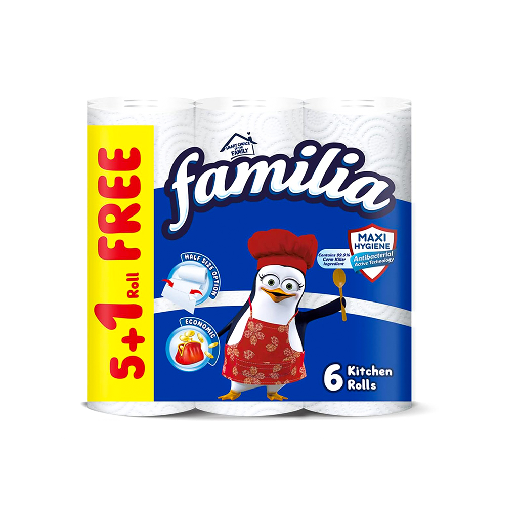 العلامة التجارية : فاميليا النوع : مناديل مطبخ اللون : أبيض عدد القطع : 4 قطع عدد الطبقات : 3 طبقة عن المنتج : تساعد في الحفاظ على النظافة ومنع التلوث المتبادل. مناسبة للتنظيف، وتجفيف اليدين، وتغطية الطعام. عالية الامتصاص تمتص السوائل المنسكبة بسرعة. مُخصصة للاستخدام مرة واحدة وسهلة الاستخدام. سهلة التخزين والاستخدام.