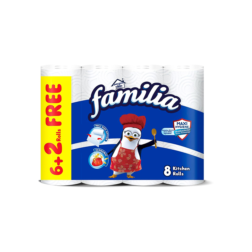 العلامة التجارية : فاميليا النوع : مناديل مطبخ اللون : أبيض عدد القطع : 4 قطع عدد الطبقات : 3 طبقة عن المنتج : تساعد في الحفاظ على النظافة ومنع التلوث المتبادل. مناسبة للتنظيف، وتجفيف اليدين، وتغطية الطعام. عالية الامتصاص تمتص السوائل المنسكبة بسرعة. مُخصصة للاستخدام مرة واحدة وسهلة الاستخدام. سهلة التخزين والاستخدام.