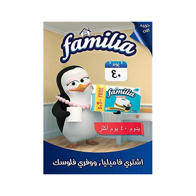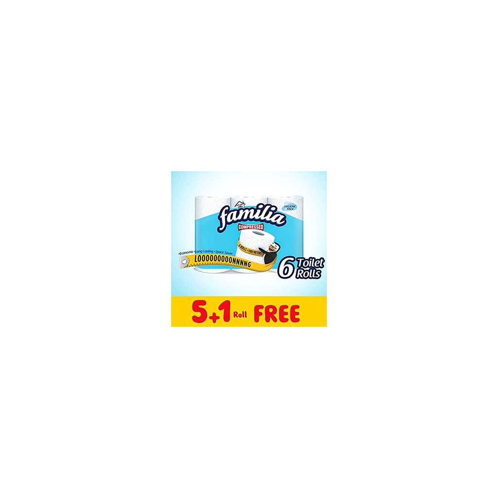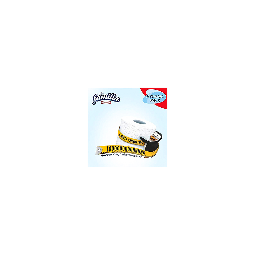 العلامة التجارية : فاميليا النوع : مناديل حمام اللون : أبيض عدد القطع : 6 قطع عن المنتج : ورق تواليت فاميليا فائق النعومة يقضي على الروائح الكريهة وينشر رائحة طيبة ومضغوط وأكبر وأكثر سمكًا ولا يسبب الحساسية يحتوي على مكونات تقتل 99.9% من الجراثيم مناديل فاميليا حساسة على الجلد أصبحت الآن أكبر وأكثر سمكًا بفضل تقنية الحجم الإضافي