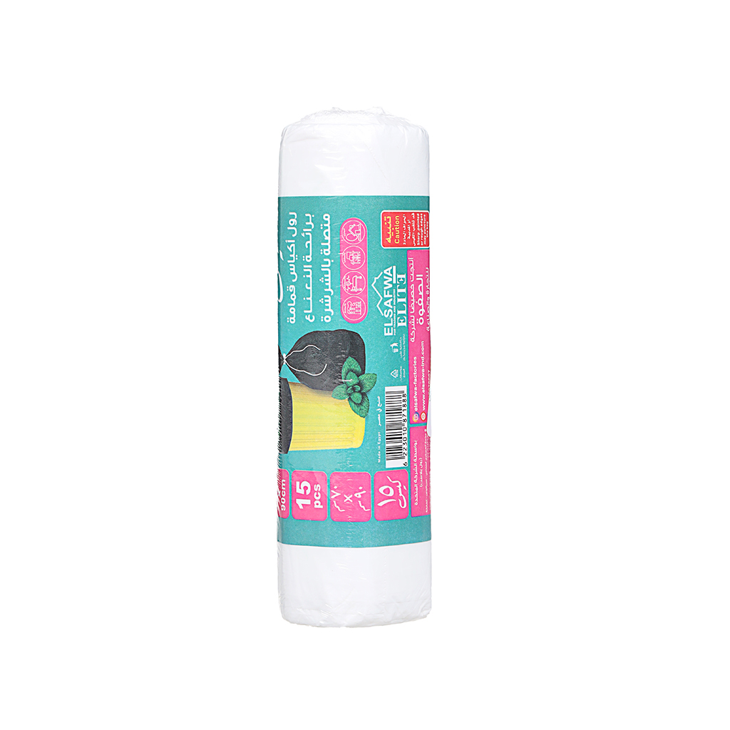 رول أكياس قمامة بالنعناع ايليت، 70×90 سم، 15 قطعة - أبيض | أسواق المرشدي