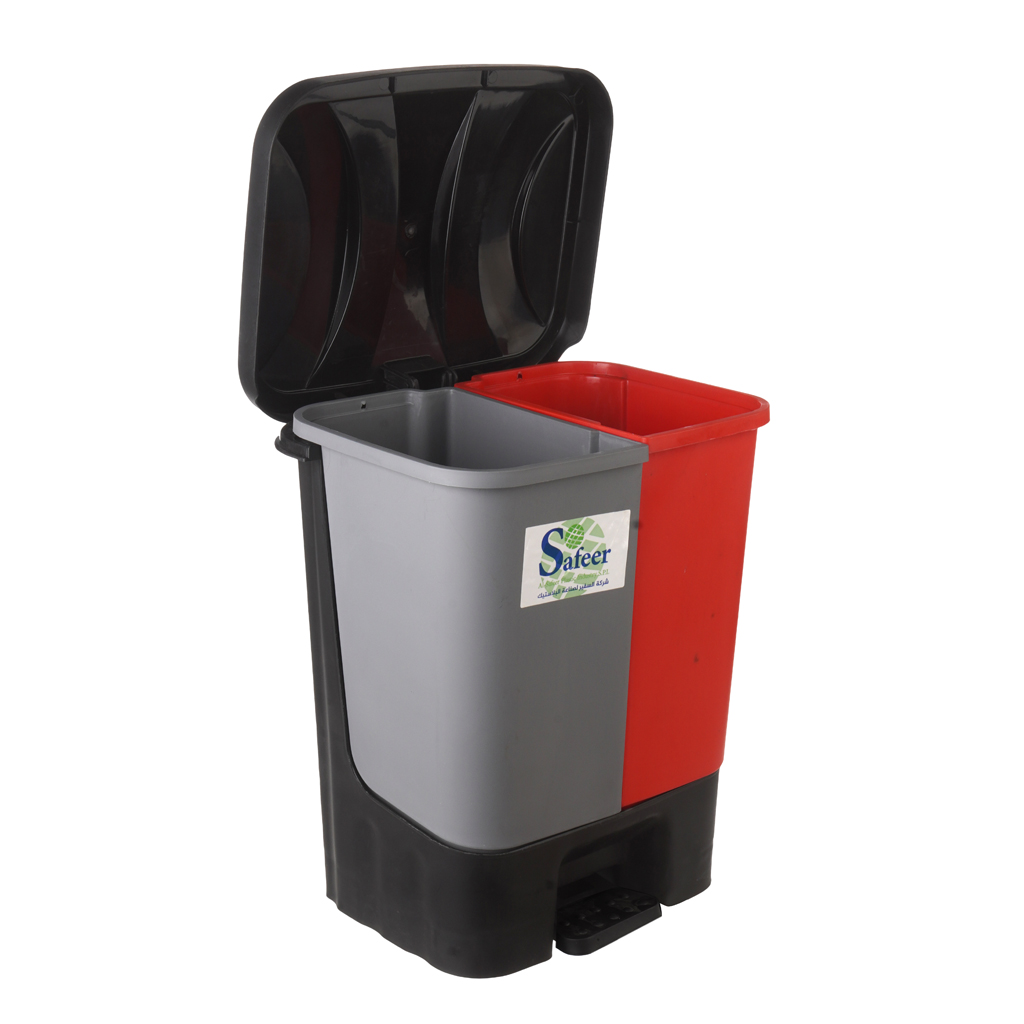 باسكت قمامة 2 عين بلاستيك بدواسة قدم سفير، 20 لتر، 1052 - رمادي أحمر | أسواق المرشدي