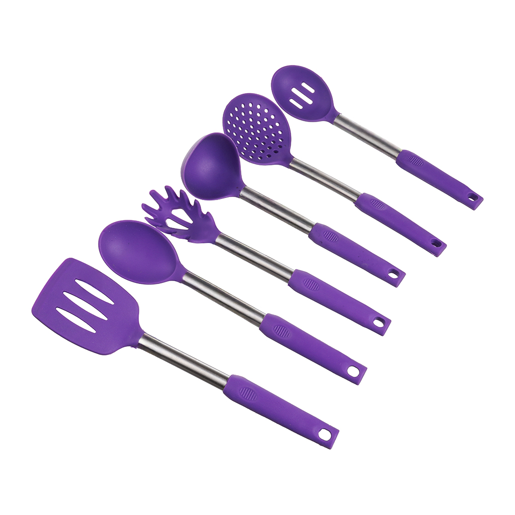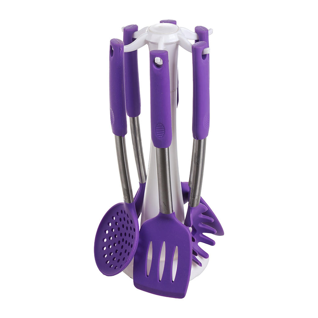 طقم توزيع سيليكون مع حامل الشيف، 7 قطع - بنفسجي | أسواق المرشدي