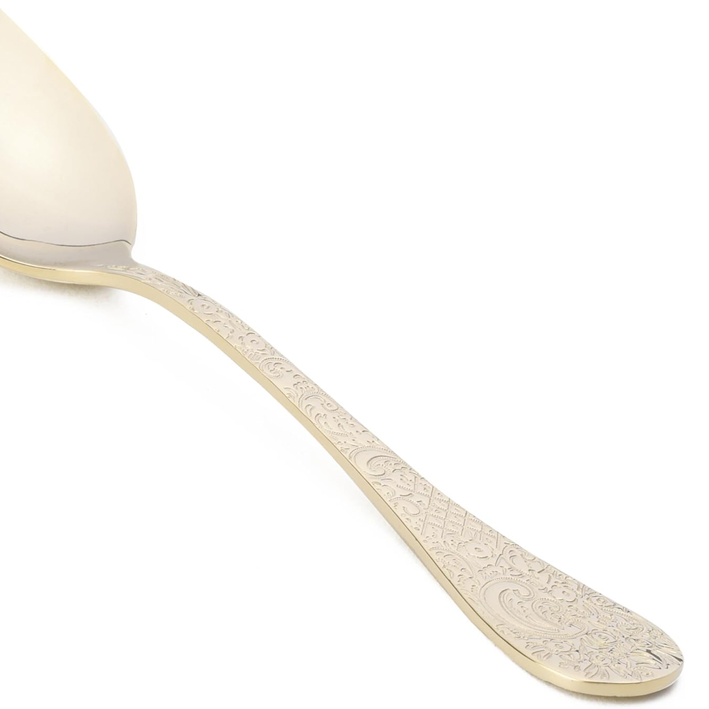العلامة التجارية : هيردمار النوع : طقم أدوات توزيع اللون : فضي ذهبي استانلستيل 18/10 عدد القطع : 6 قطع نبذة عن المنتج : مصنوع من الاستانلستيل المقاوم للصدأ عالي الجودة، مما يضمن متانة طويلة ومقاومة للصدأ والبقع والتآكل. يتميز بتصميم أنيق وعصري يضفي لمسة من الرقي على أي طاولة طعام، مثالي للمناسبات الرسمية وغير الرسمية. مادة الاستانلستيل المقاوم للصدأ سهلة التنظيف والصيانة، وغالبًا ما تكون آمنة للغسل في غسالة الأطباق لمزيد من الراحة. المجموعة قادرة على تحمل درجات الحرارة العالية، مما يجعلها مناسبة لتقديم الأطباق الساخنة دون القلق من التلف. تتضمن مجموعة متنوعة من أدوات التقديم، مثل: مغرفة حساء واحدة: مثالية لتقديم الحساء واليخنات والمرق بسهولة. ملعقتان تقديم: مثالية لتقديم مجموعة متنوعة من الأطباق مثل الخضراوات والأرز والمعكرونة. شوكة واحدة: شوكة تقديم، رائعة لرفع وتقديم اللحوم والسلطات أو الأطعمة الأخرى. ملعقة مسطحة: ملعقة تقديم متعددة الاستخدامات لقلب ورفع وتقديم مجموعة متنوعة من الأطعمة، بما في ذلك الكعك أو المشويات. سكين تقديم واحدة مصممة لتقطيع وتقديم كميات كبيرة من اللحوم، أو المشويات، أو غيرها من الأطباق. عدد 1 مغرفة شوربة عدد 2 مغرفة عدد 1 شوكة عدد 1 ملعقة سباتولا عدد 1 سكينة تقديم