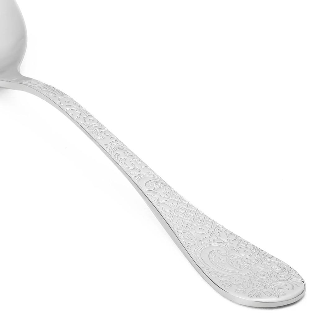 العلامة التجارية : هيردمار النوع : طقم أدوات توزيع اللون : فضي ذهبي استانلستيل 18/10 عدد القطع : 6 قطع نبذة عن المنتج : مصنوع من الاستانلستيل المقاوم للصدأ عالي الجودة، مما يضمن متانة طويلة ومقاومة للصدأ والبقع والتآكل. يتميز بتصميم أنيق وعصري يضفي لمسة من الرقي على أي طاولة طعام، مثالي للمناسبات الرسمية وغير الرسمية. مادة الاستانلستيل المقاوم للصدأ سهلة التنظيف والصيانة، وغالبًا ما تكون آمنة للغسل في غسالة الأطباق لمزيد من الراحة. المجموعة قادرة على تحمل درجات الحرارة العالية، مما يجعلها مناسبة لتقديم الأطباق الساخنة دون القلق من التلف. تتضمن مجموعة متنوعة من أدوات التقديم، مثل: مغرفة حساء واحدة: مثالية لتقديم الحساء واليخنات والمرق بسهولة. ملعقتان تقديم: مثالية لتقديم مجموعة متنوعة من الأطباق مثل الخضراوات والأرز والمعكرونة. شوكة واحدة: شوكة تقديم، رائعة لرفع وتقديم اللحوم والسلطات أو الأطعمة الأخرى. ملعقة مسطحة: ملعقة تقديم متعددة الاستخدامات لقلب ورفع وتقديم مجموعة متنوعة من الأطعمة، بما في ذلك الكعك أو المشويات. سكين تقديم واحدة مصممة لتقطيع وتقديم كميات كبيرة من اللحوم، أو المشويات، أو غيرها من الأطباق. عدد 1 مغرفة شوربة عدد 2 مغرفة عدد 1 شوكة عدد 1 ملعقة سباتولا عدد 1 سكينة تقديم