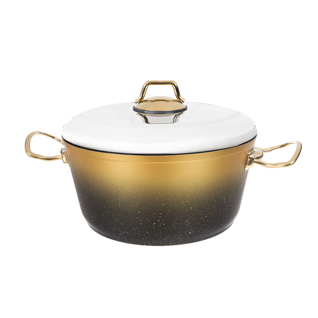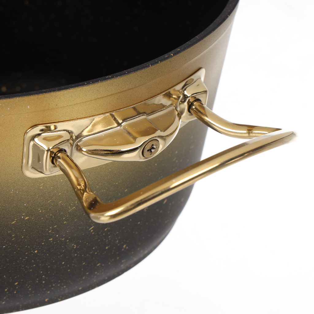 العلامة التجارية: نايس كوكر النوع: طقم حلل اللون: ذهبي الخامة: تيتانيوم عدد القطع: 10 قطع يتكون من: حلة مقاس 18سم حلة مقاس 20 سم حلة مقاس 24 سم حلة مقاس 30 سم قلاية ووك 30 سم صينية مقاس 28 سم متانة فائقة: مصنوع من التيتانيوم أو مطلي بطبقة تيتانيوم، مما يجعله مقاومًا للخدوش والتآكل. غير لاصق بامتياز: يتميز بسطح طهي غير لاصق عالي الجودة، يقلل الحاجة إلى الزيوت أو الدهون، مما يجعله صحيًا أكثر. تحمل درجات حرارة عالية: يتحمّل الحرارة العالية بشكل ممتاز، مناسب للطبخ على مختلف أنواع المواقد (غاز، كهرباء، سيراميك، وأحيانًا الحثّ المغناطيسي). سهل التنظيف: بفضل الطلاء غير اللاصق، يمكن تنظيفه بسهولة دون الحاجة للفرك القوي أو النقع الطويل. توزيع حراري متساوٍ: يضمن توزيعًا مثاليًا للحرارة في قاع الحلة، مما يمنع احتراق الطعام ويُساعد على نضج متوازن.