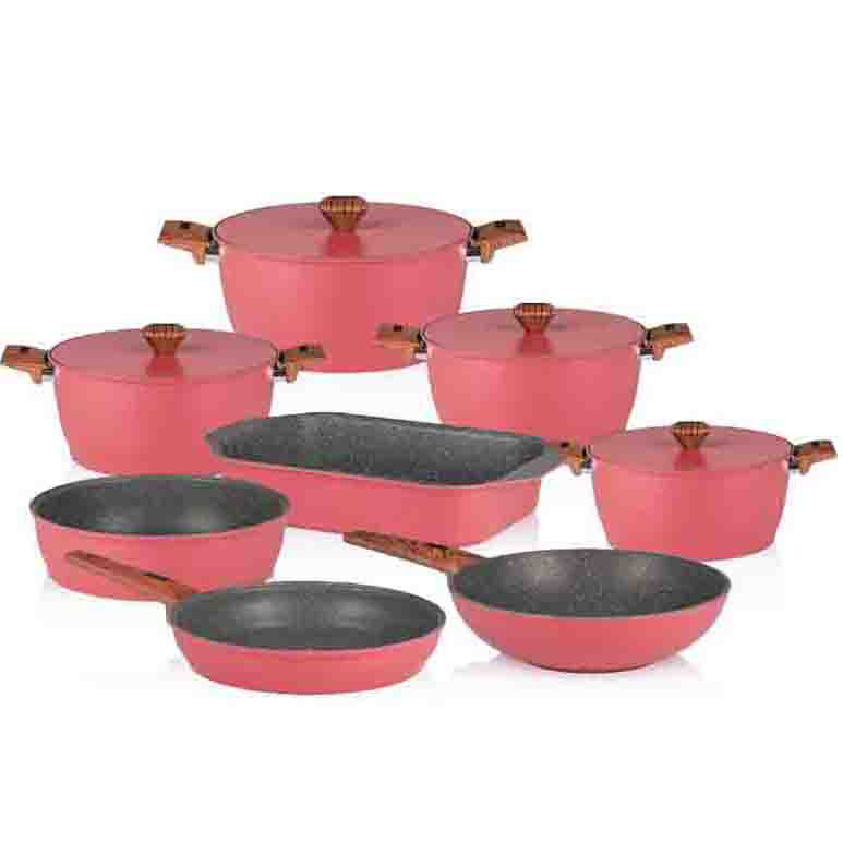 طقم حلل جرانيت جيجلى، 12 قطع - بينك | أسواق المرشدي