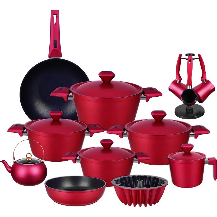 طقم حلل تيتانيوم جيجلى، 19 قطعة - أحمر | أسواق المرشدي