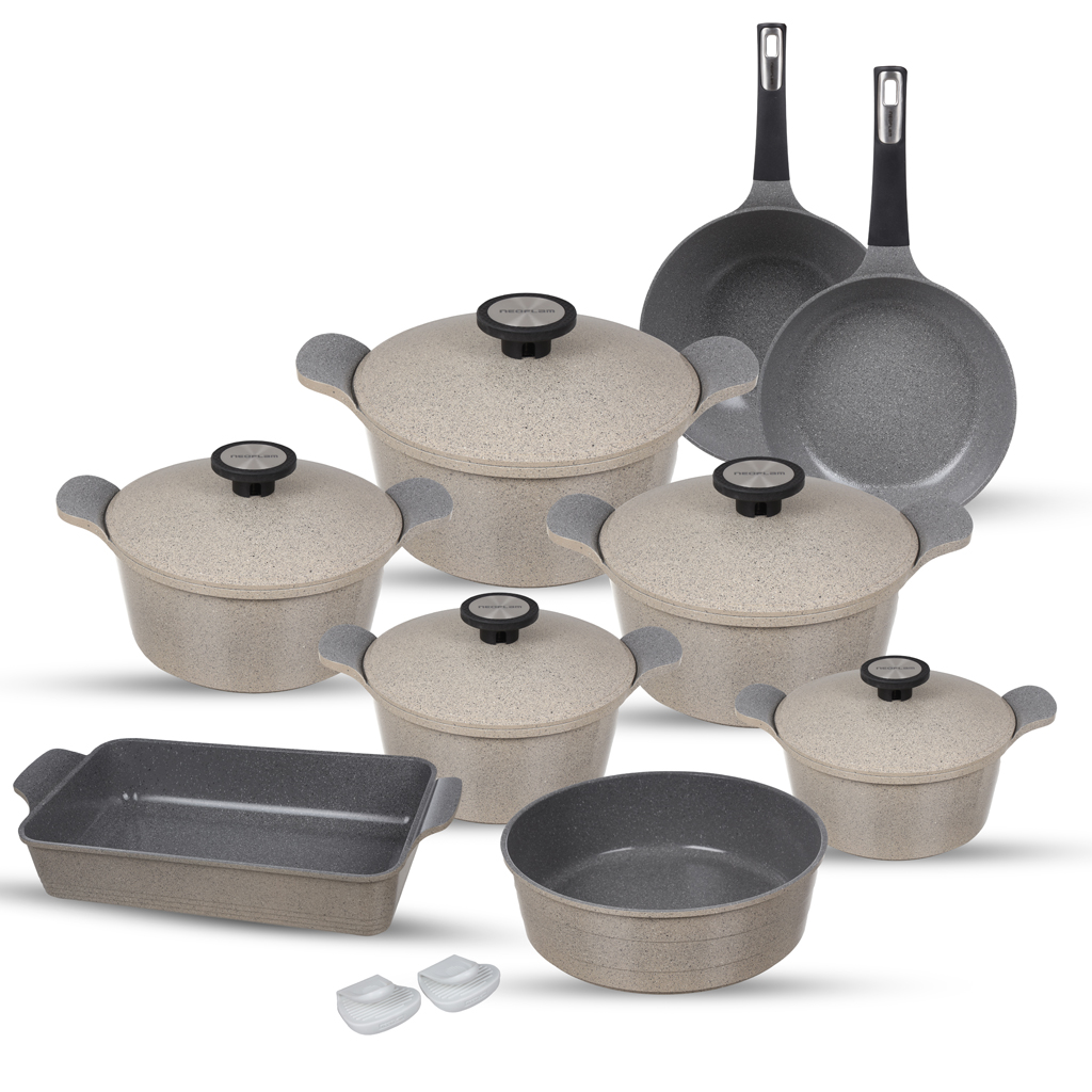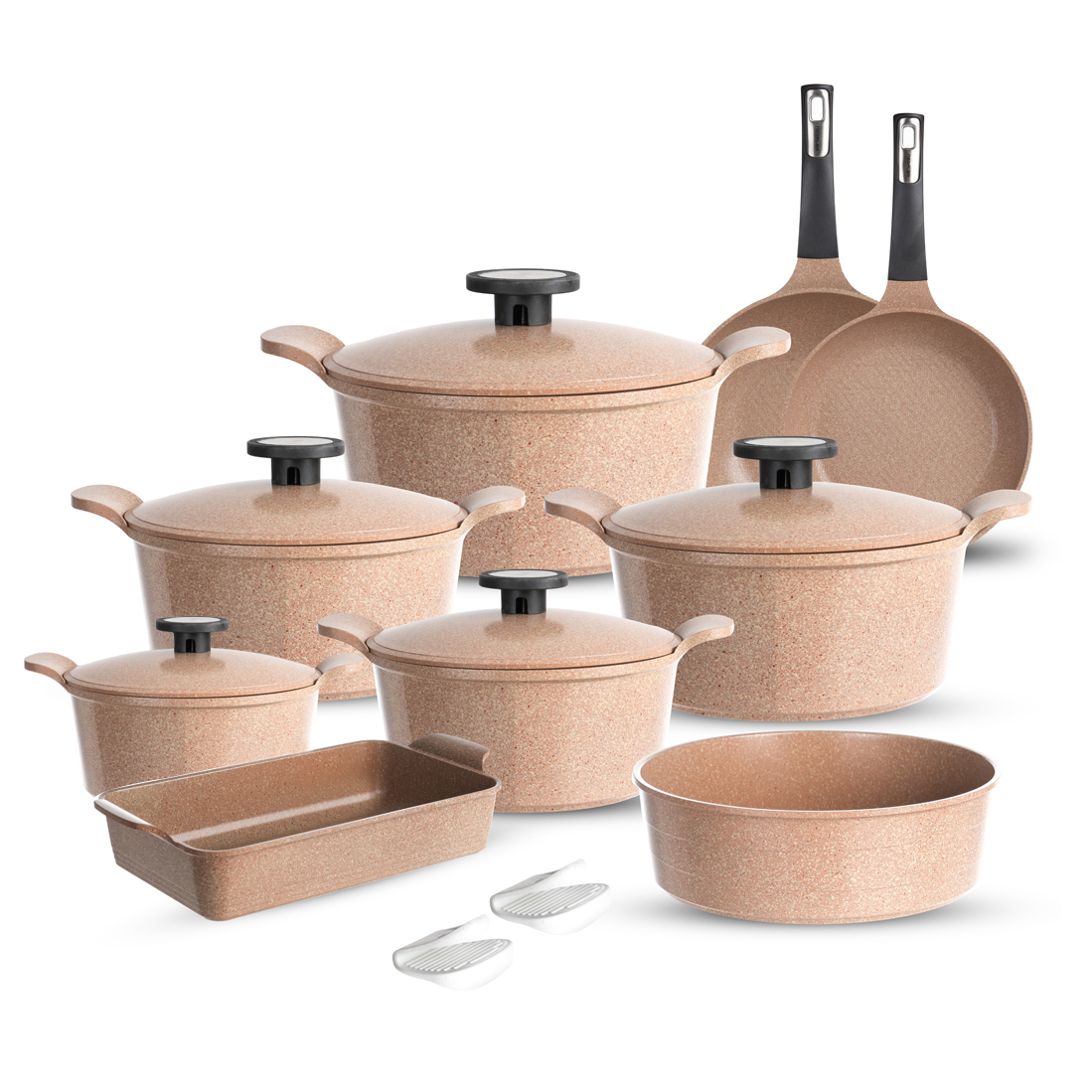 العلامة التجارية: نيوفلام النوع: أطقم حلل الطهي اللون: بيج الخامة: جرانيت