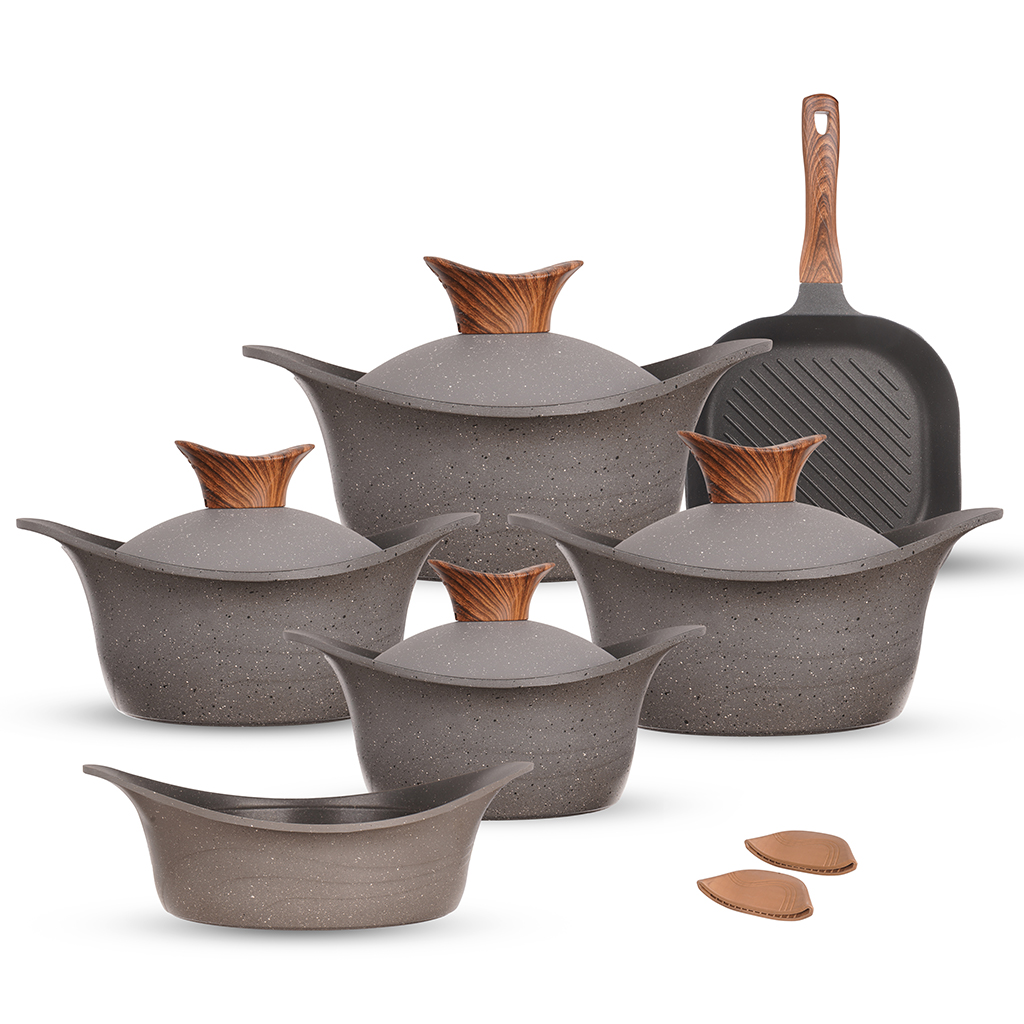 العلامة التجارية: نيوكلاين النوع: أطقم حلل الطهي اللون: رمادي الخامة: جرانيت