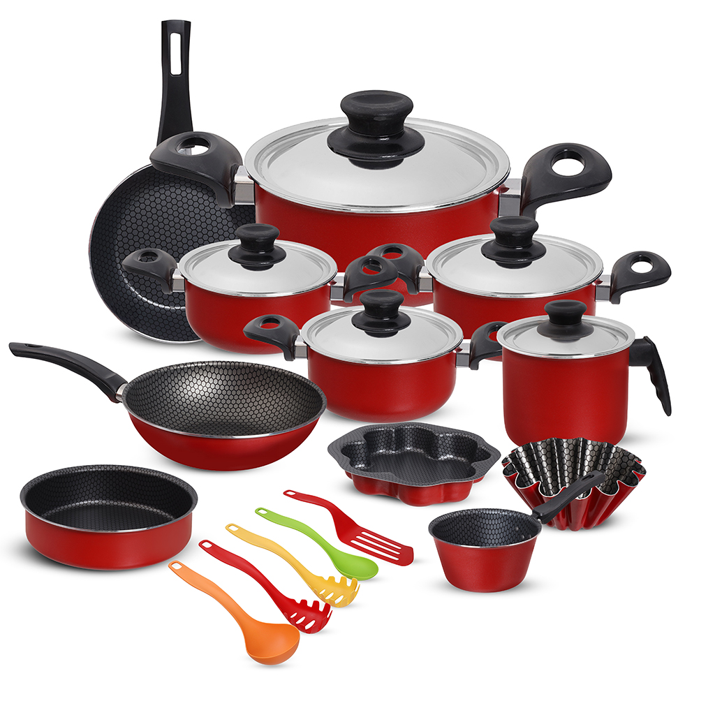 طقم حلل تيفلون تروفال، 21 قطعة - أحمر | Almorshedy Marts