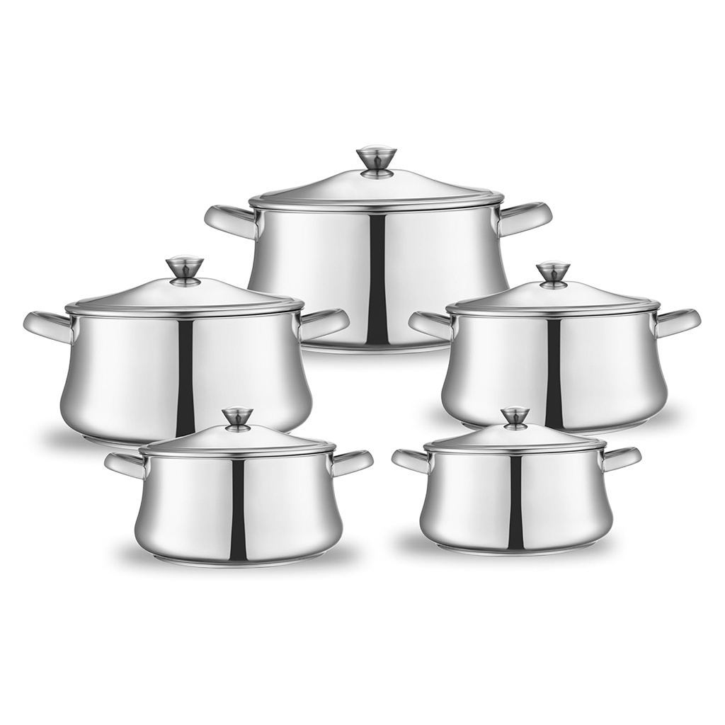طقم حلل ستانلس ستيل زهران، 10 قطع - فضي | Almorshedy Marts