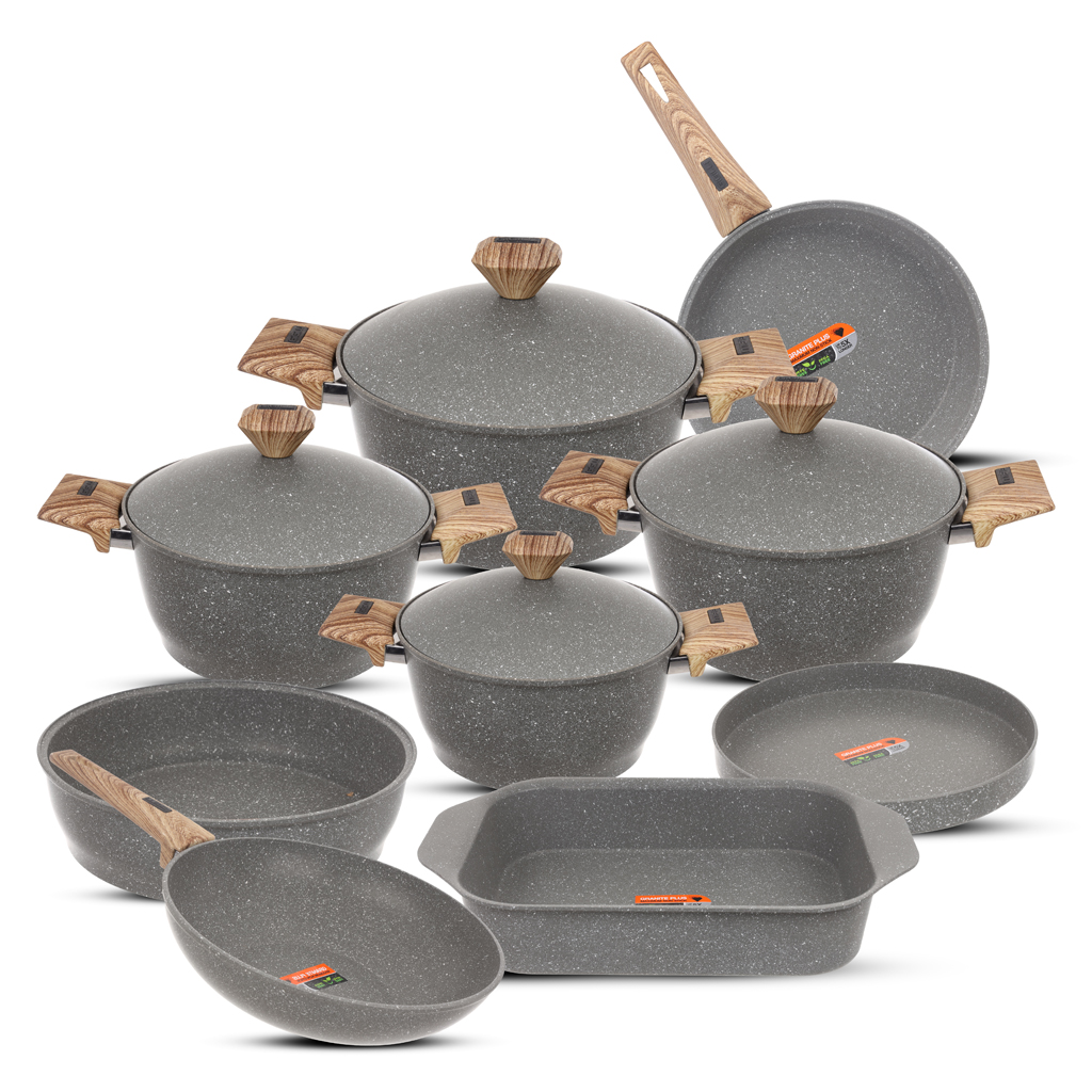 طقم حلل جرانيت جيجلى، 13 قطعة - رمادي | أسواق المرشدي