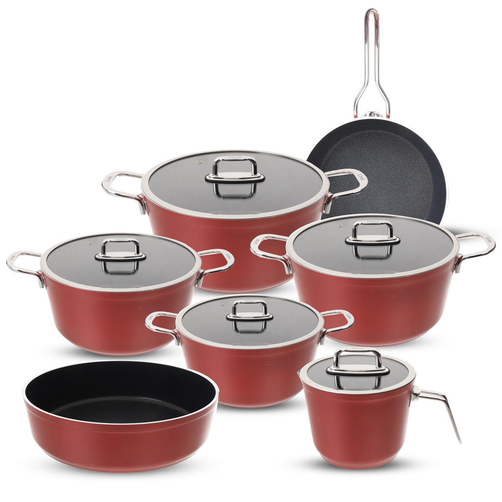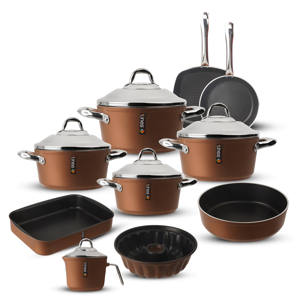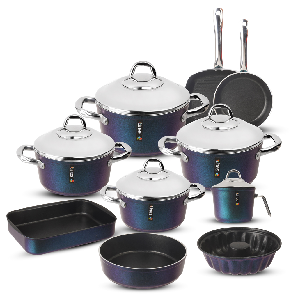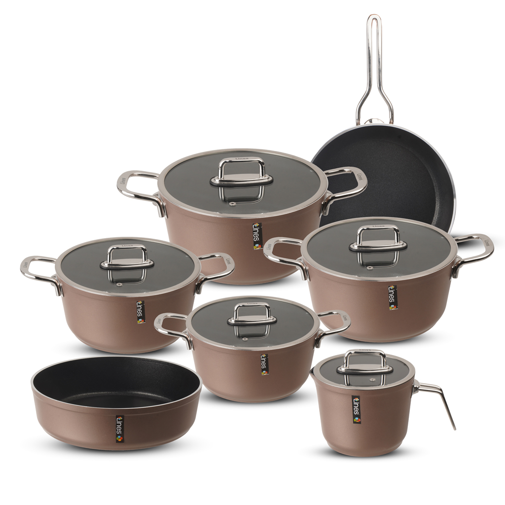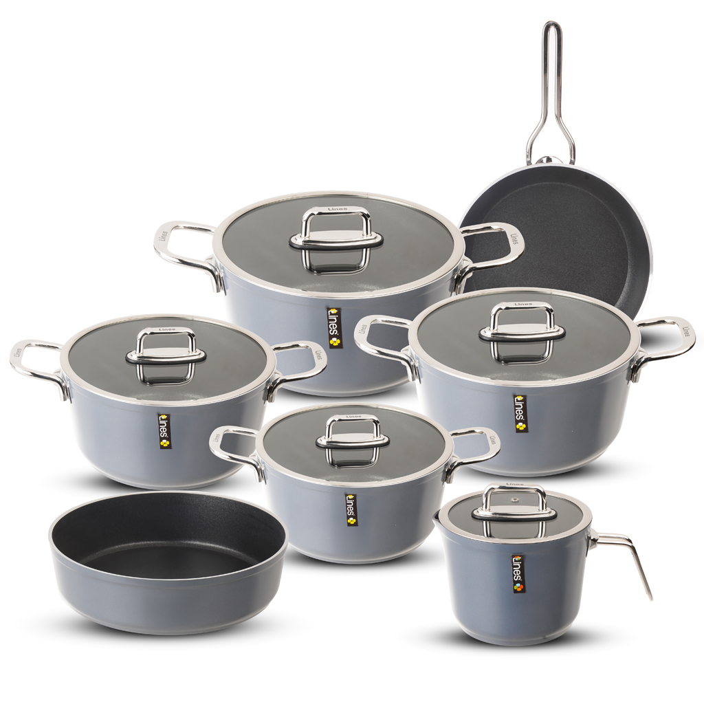 طقم حلل تيتانيوم لاينز، 12 قطعة - نبيتي | Almorshedy Marts