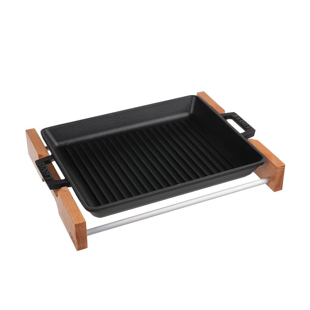 العلامة التجارية : لافا النوع : قلاية جريل حديد زهر مع قاعدة خشبية اللون : أسود