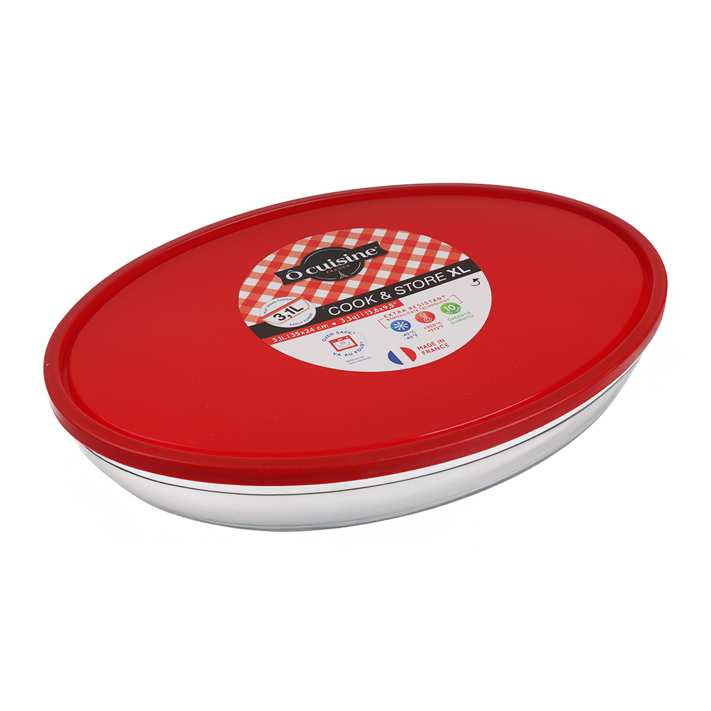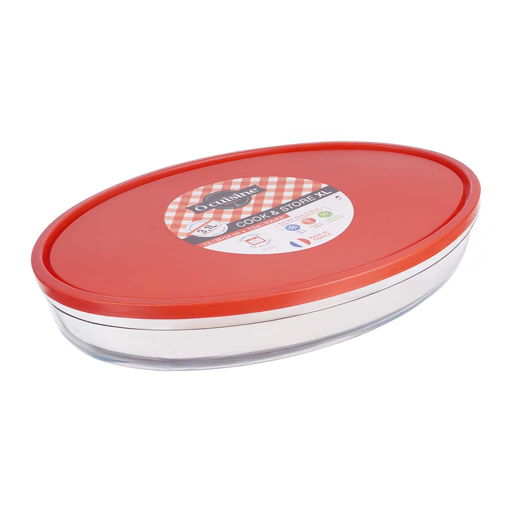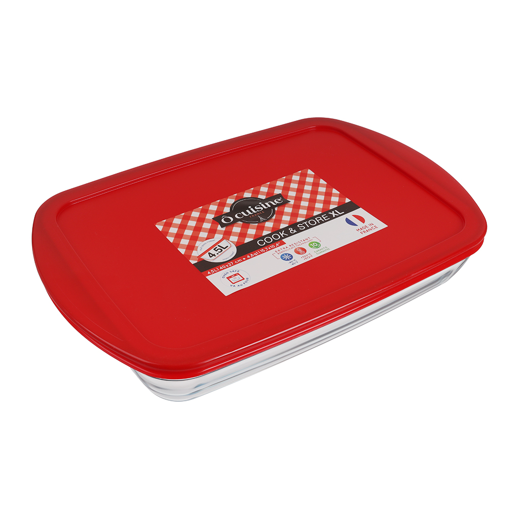 طقم طواجن فرن مستطيل بالغطاء زجاج أو كوزين، 2 قطعة - شفاف أحمر | Almorshedy Marts
