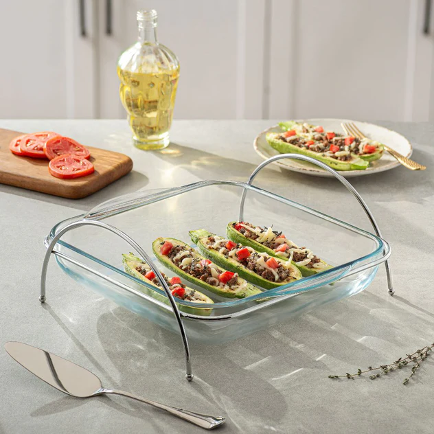 العلامة التجارية: باشابتشى النوع: طاجن فرن مستطيل بغطاء و حامل اللون: شفاف
