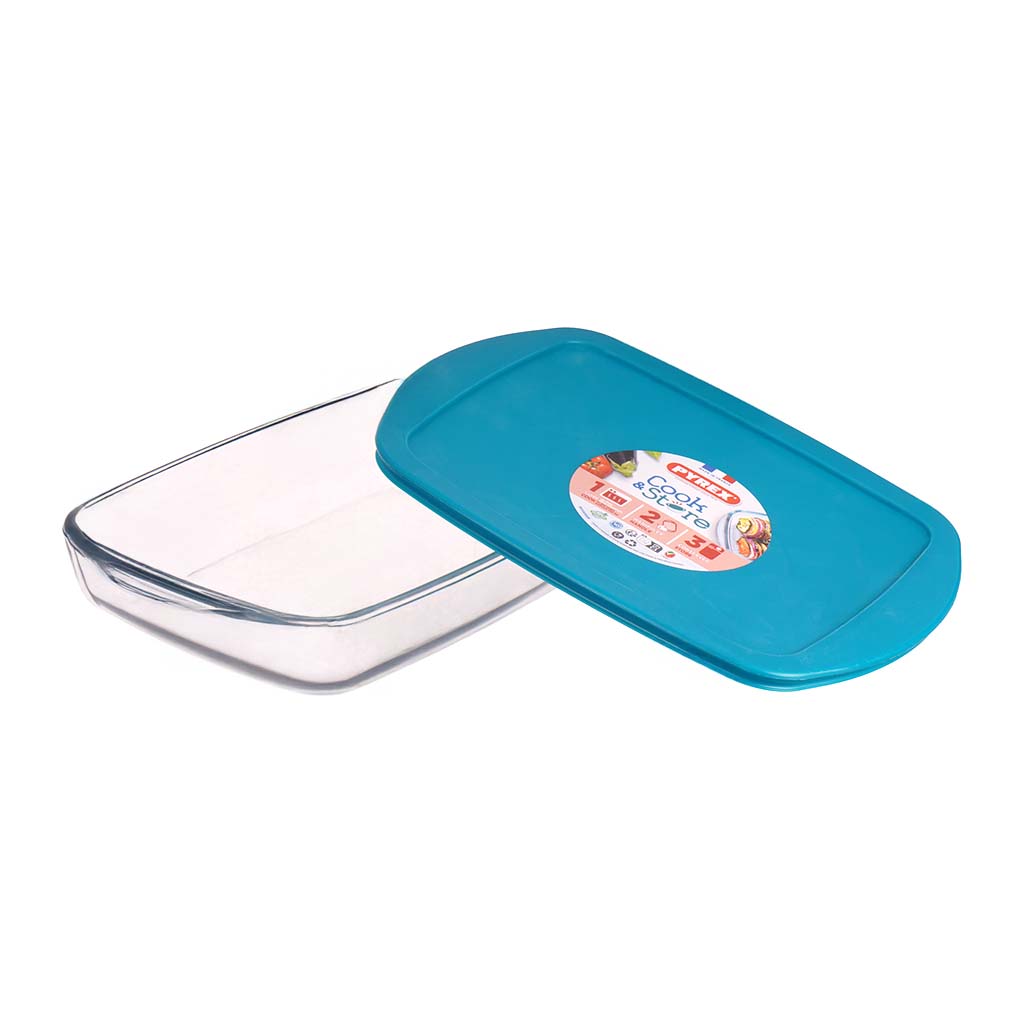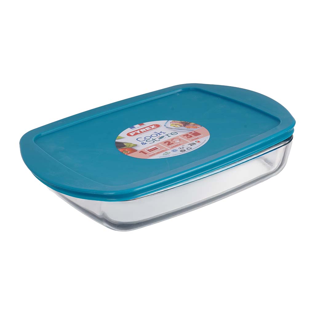 طاجن فرن مستطيل بالغطاء زجاج بايركس، 28 سم - شفاف تركواز | Almorshedy Marts