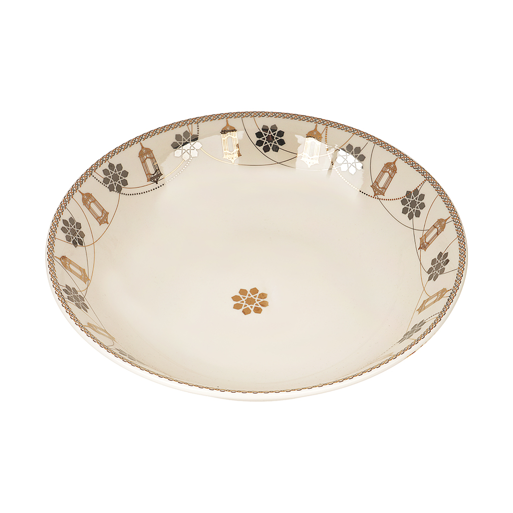 طاجن فرن بورسلين دائرى فتحي محمود، 35 سم - ذهبي أبيض | Almorshedy Marts