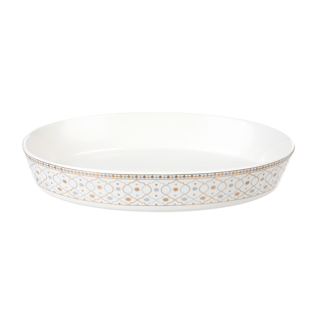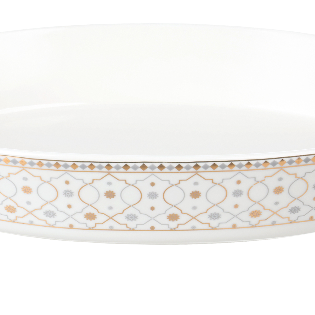 طاجن فرن بورسلين بيضاوي روزا، 38 سم - ذهبي أبيض | Almorshedy Marts