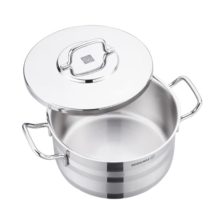 العلامة التجارية: كوركماز النوع: الحلل اللون: فضي الخامة: ستانلس ستيل رقم الموديل: 1031 السعة: 30 سم تتمكن من طهي مجموعة متنوعة من الأكلات بسهولة الحلل الاستانلس لا يتفاعل مع الطعام لضمان سلامتك وسلامة عائلتك و يظل لامعًا ويبدو مظهره رائعًا مقاومة للخدش مقاومة للاعوجاج سهل التنظيف