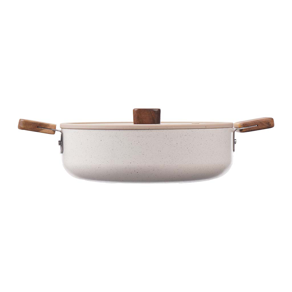 حلة بغطاء زجاج جرانيت نيوفلام، 24 سم - بيج فاتح | Almorshedy Marts
