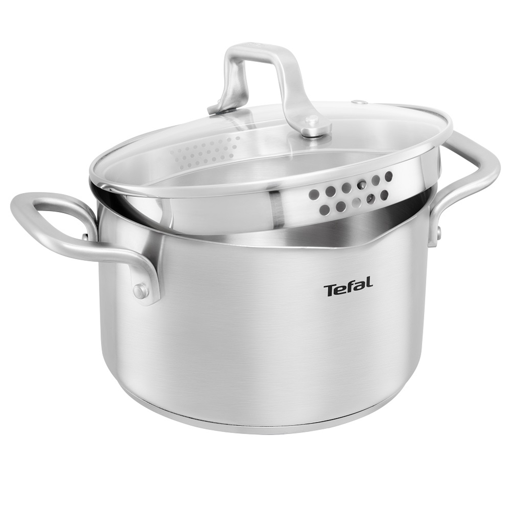 حلة بغطاء زجاجي ستانلس ستيل دويتو تيفال، 26 سم، 220800003 - فضي | Almorshedy Marts