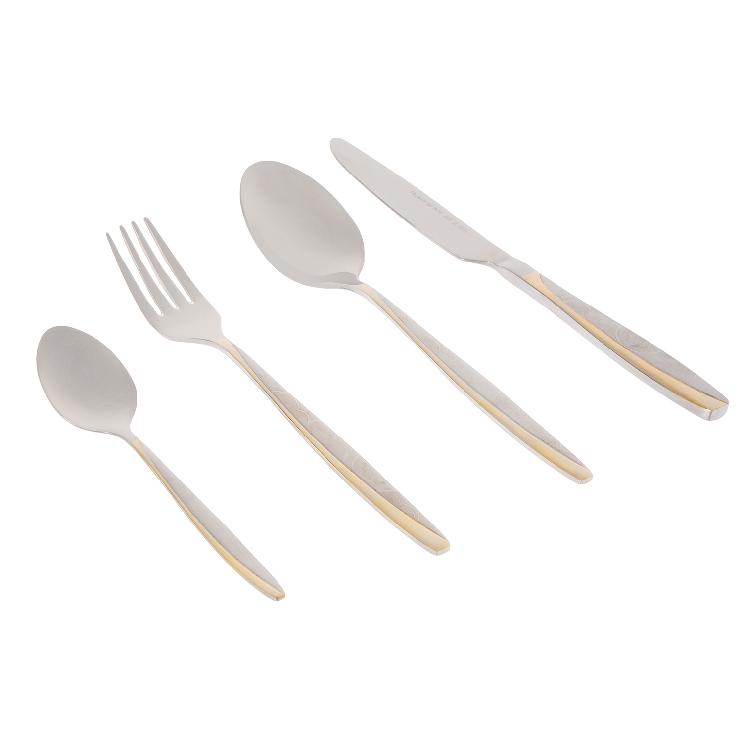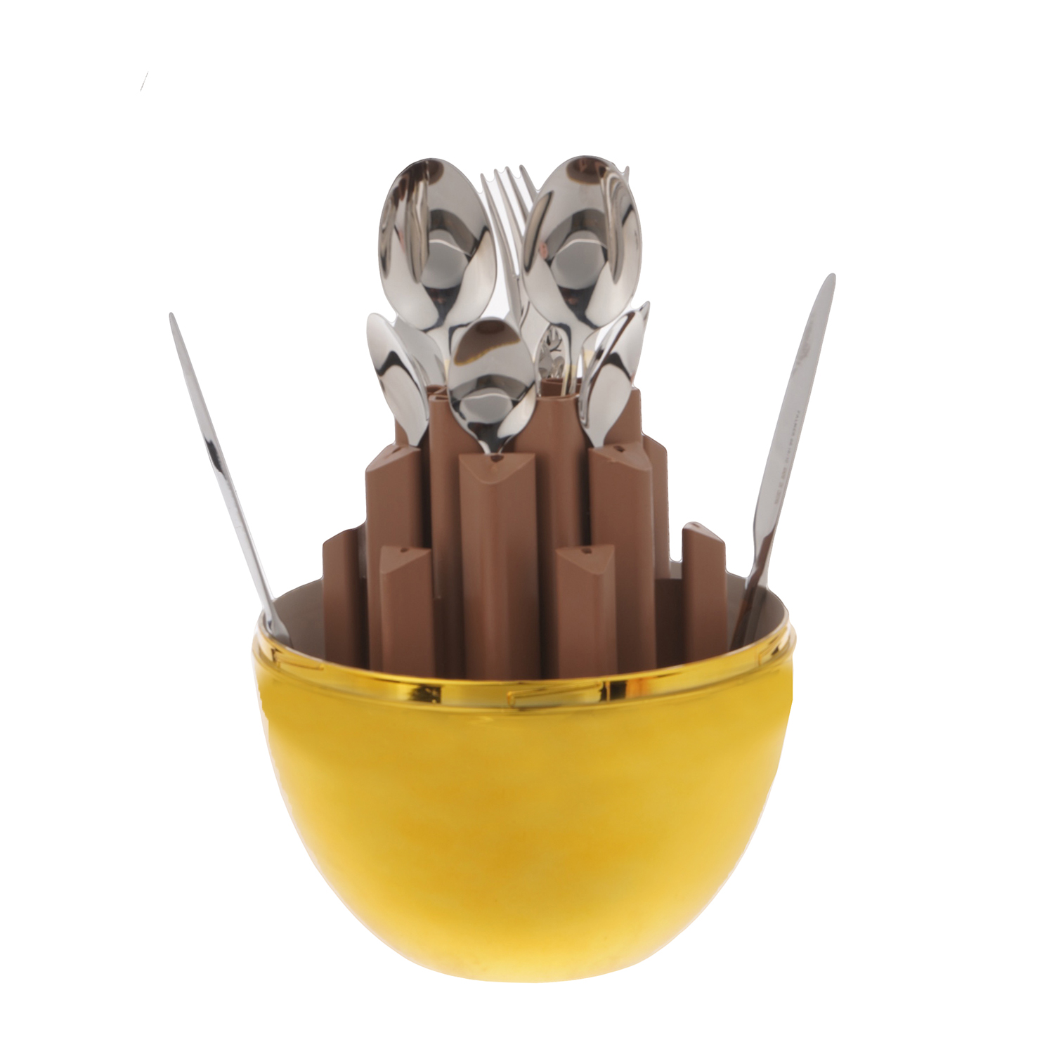 طقم أدوات مائدة ستانلس ستيل، 24 قطعة مع حامل بيضاوي - فضي ذهبي | Almorshedy Marts