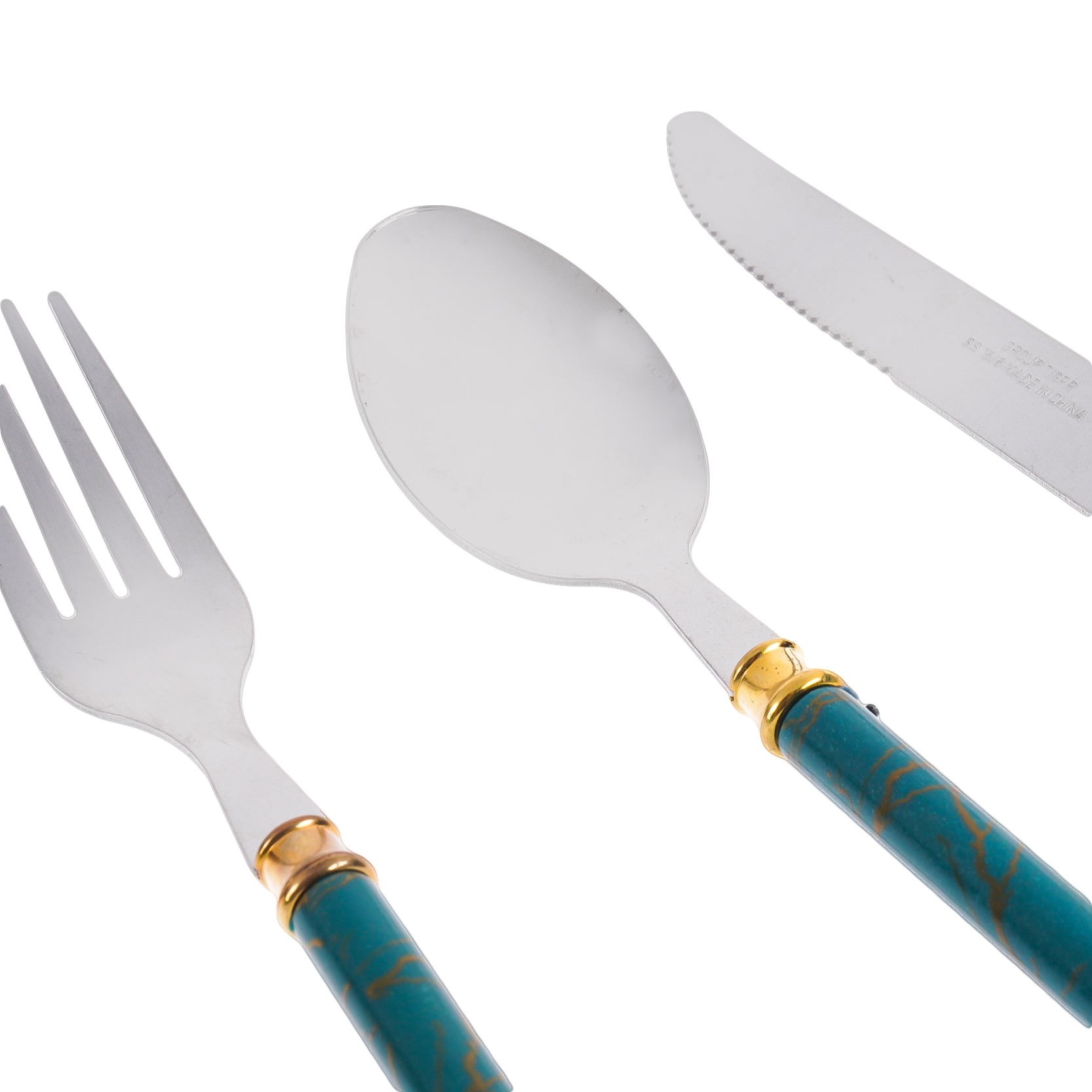 العلامة التجارية: أخري النوع: طقم أدوات مائدة اللون: فضي ذهبي