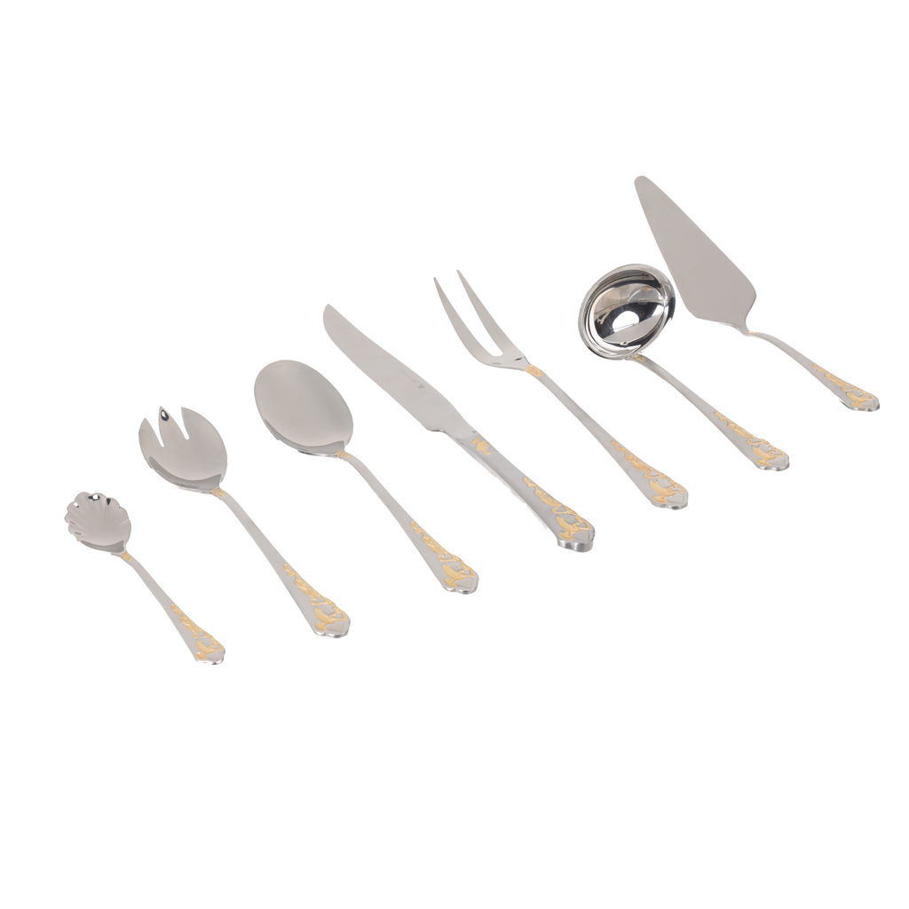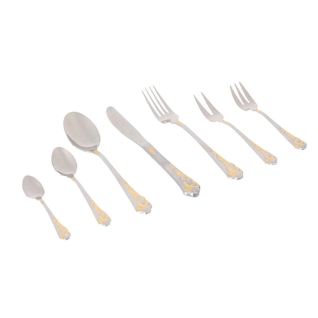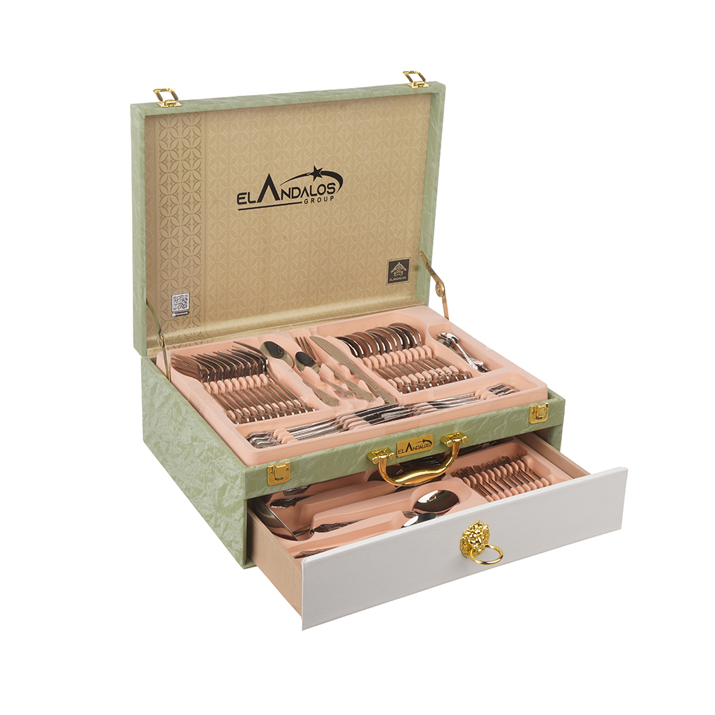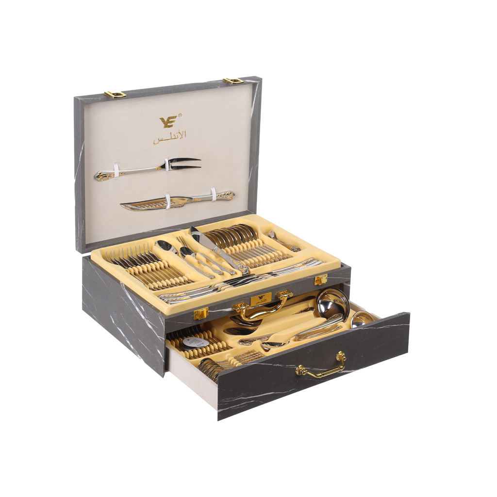 طقم أدوات مائدة ستانلس ستيل الاندلس، 86 قطعة - فضي ذهبي | Almorshedy Marts