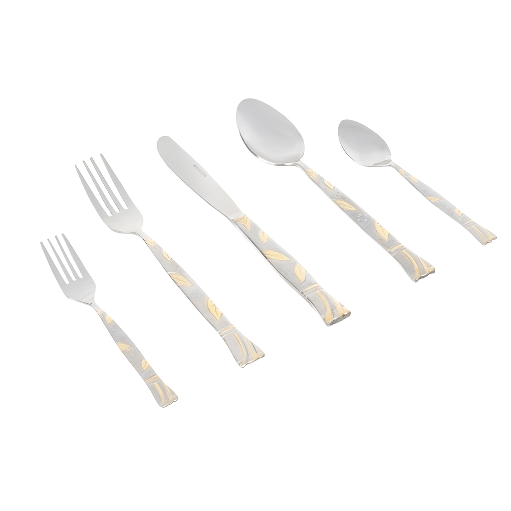 طقم أدوات مائدة ستانلس ستيل ارشيا، 86 قطع - فضي ذهبي | أسواق المرشدي
