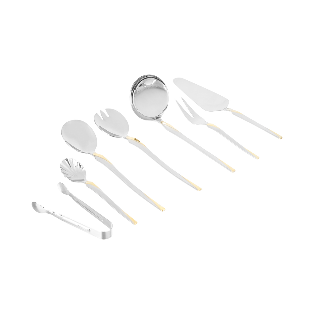 طقم أدوات مائدة ستانلس ستيل نيوكلاين، 86 قطعة - فضي ذهبي | أسواق المرشدي