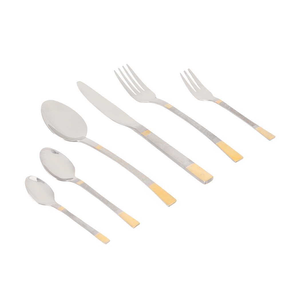 العلامة التجارية: أخري النوع: طقم أدوات مائدة اللون: فضي ذهبي