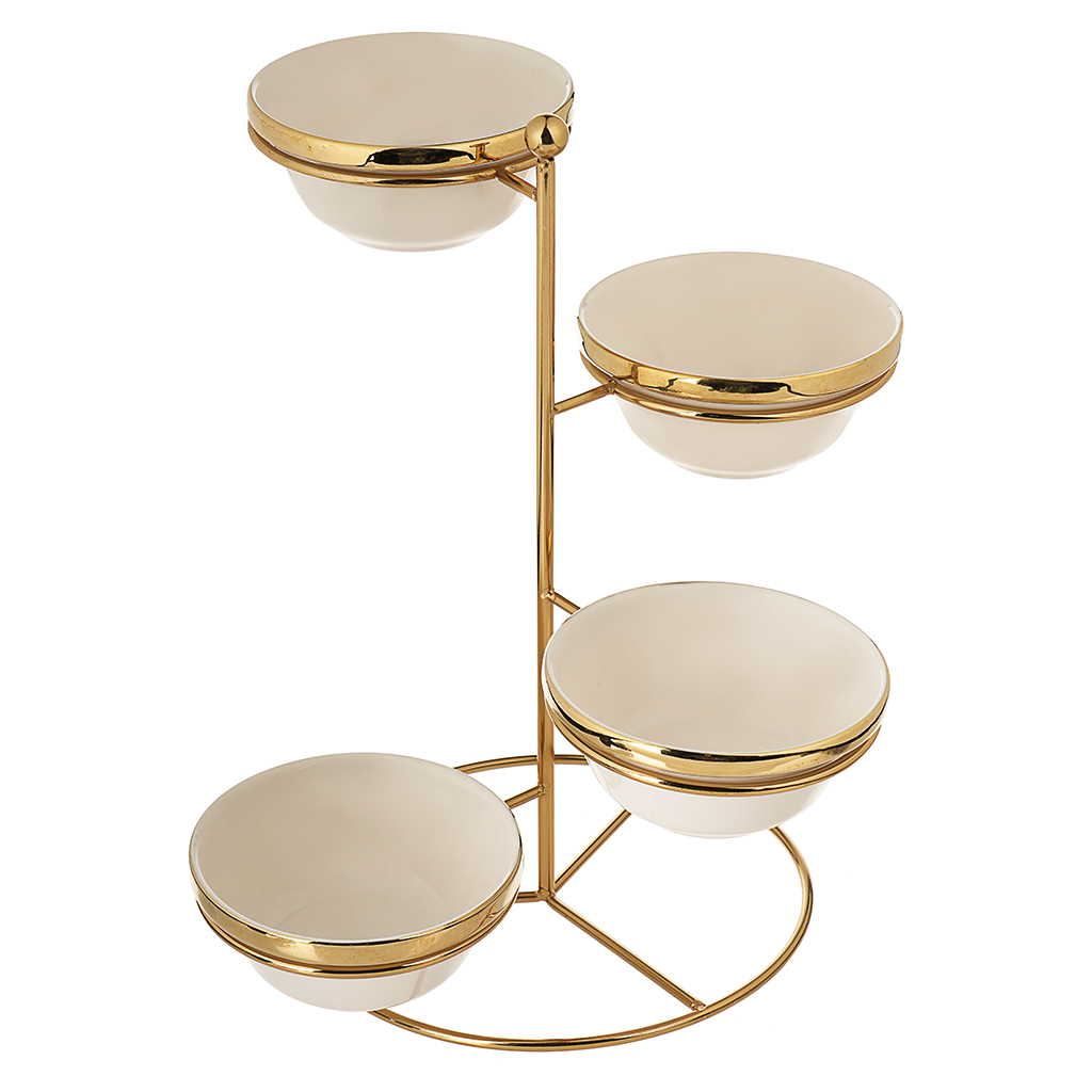 طقم بولة بورسلين مع حامل ستانلس ستيل فتحي محمود، 4 قطع - متعدد الالوان | Almorshedy Marts