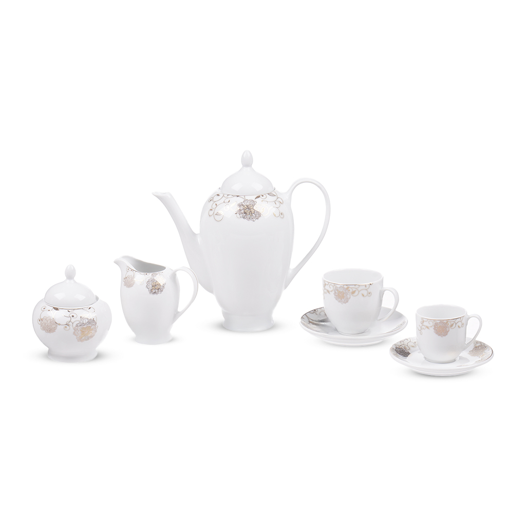العلامة التجارية: فتحي محمود النوع: أطقم العشاء اللون: أبيض فضي عدد القطع: 72 قطعة الخامة: بورسلين يتضمن 72 قطعة مختارة بعناية: 1 براد بالغطاء 1 سكرية بالغطاء 1 لبانة 6 فنجان شاي مع 6 طبق 6 فنجان قهوة مع 6 طبق 1 بولة شوربة مع غطاء 1 بولة سلطة 6 بولة صغير 6 طبق تقديم عميق 1 سرفيس مسطتيل 1 سرفيس مربع 2 طبق تقديم 6 طبق مسطح 6 طبق عميق وسط 6 طبق عميق صغير 4 بولة صوص 2 ملاحة