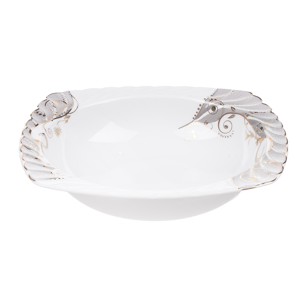 العلامة التجارية: فتحي محمود النوع: أطقم العشاء اللون: أبيض فضي عدد القطع: 72 قطعة الخامة: بورسلين يتضمن 72 قطعة مختارة بعناية: 1 براد بالغطاء 1 سكرية بالغطاء 1 لبانة 6 فنجان شاي مع 6 طبق 6 فنجان قهوة مع 6 طبق 1 بولة شوربة مع غطاء 1 بولة سلطة 6 بولة صغير 6 طبق تقديم عميق 1 سرفيس مسطتيل 1 سرفيس مربع 2 طبق تقديم 6 طبق مسطح 6 طبق عميق وسط 6 طبق عميق صغير 4 بولة صوص 2 ملاحة