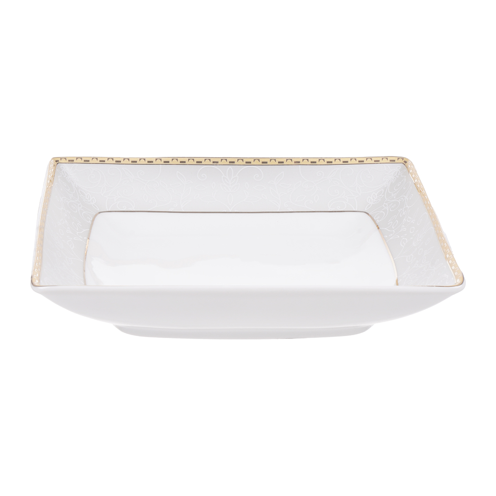 العلامة التجارية: روزا النوع: أطقم العشاء اللون: أوف وايت ذهبي عدد القطع: 57 قطعة الخامة: بورسلين طبق كبير: 30 سم براد شاي بالغطاء 6 أكواب قهوة مع 6 أطباق بولة شوربة كبيرة بالغطاء 6 بولات 15 سم 6 أطباق عميقة 22 سم 6 أكواب شاي مع 6 أطباق بولة كبيرة 23 سم سكرية بالغطاء لبانة (كريمر) 6 أطباق 25 سم 6 أطباق حلويات 20 سم