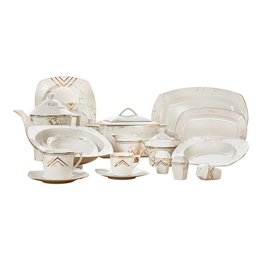 طقم سفرة بورسلين لوتس، 62 قطعة، 8021 - بيج ذهبي | أسواق المرشدي