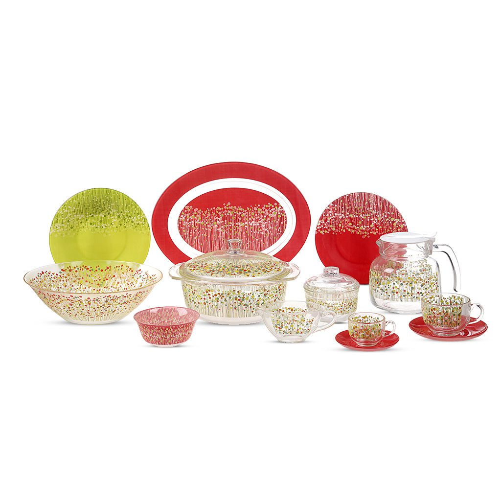 العلامة التجارية: لومينارك النوع: أطقم العشاء اللون: متعدد الالوان عدد القطع: 78 قطعة الخامة: اركوبيركس يتضمن 78 قطعة مختارة بعناية: 2 سرفيس بيضاوي 35 سم 1 بولة سلطة 27 سم 1 بولة شوربة مع غطاء 2.5 لتر 6 بولة 12 سم 12 طبق عشاء 25 سم 12 طبق دائري 21.5 سم 12 طبق كيك 19.6 سم 1 سكرية بغطاء 1 لبانة 2 ملاحة 6 فنجان قهوة مع 6 طبق 6 فنجان شاي مع 6 طبق 1 دورق مياه بالغطاء