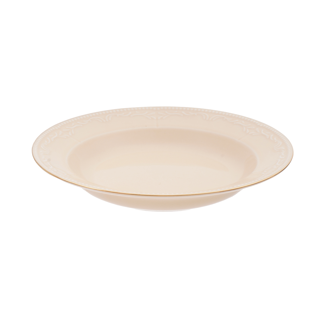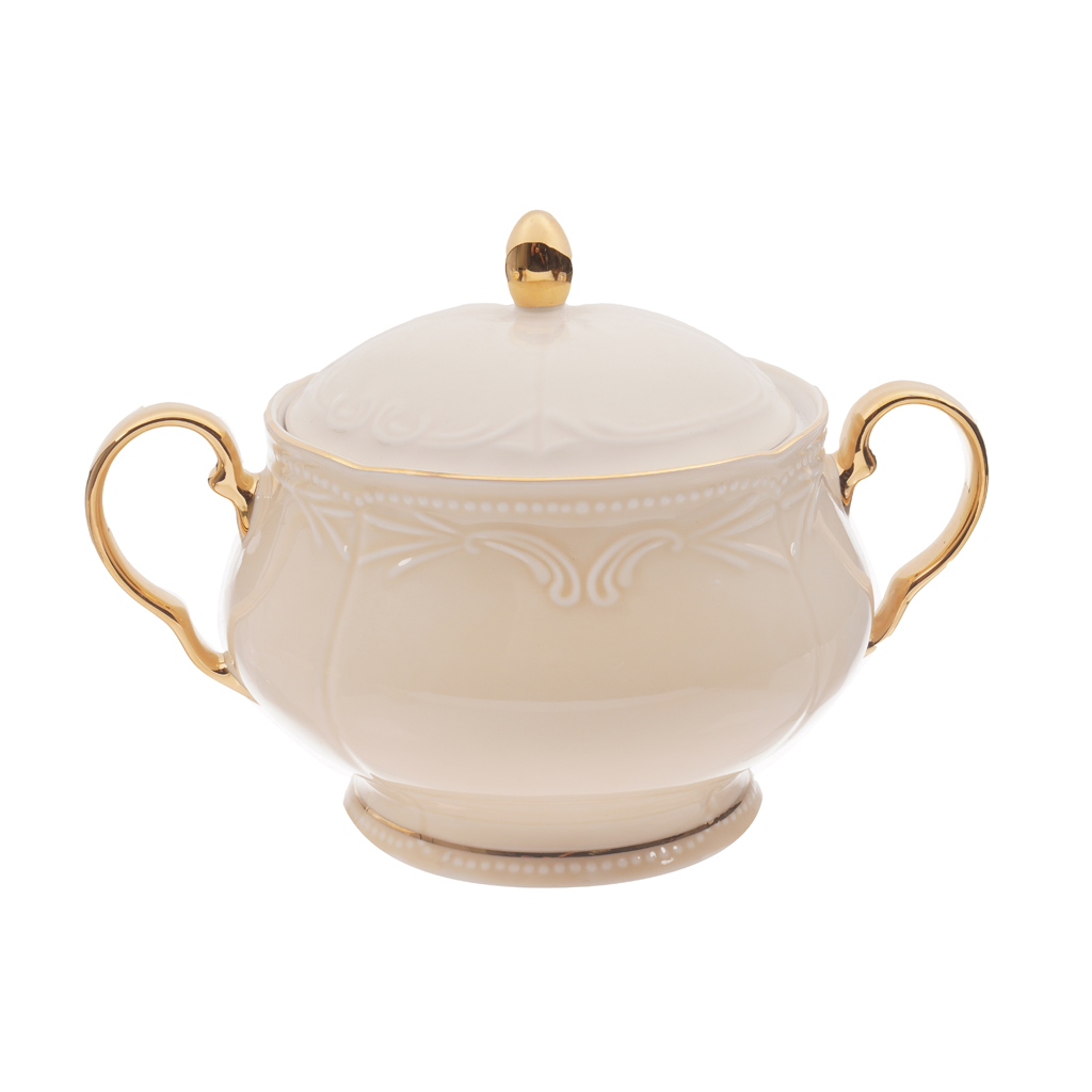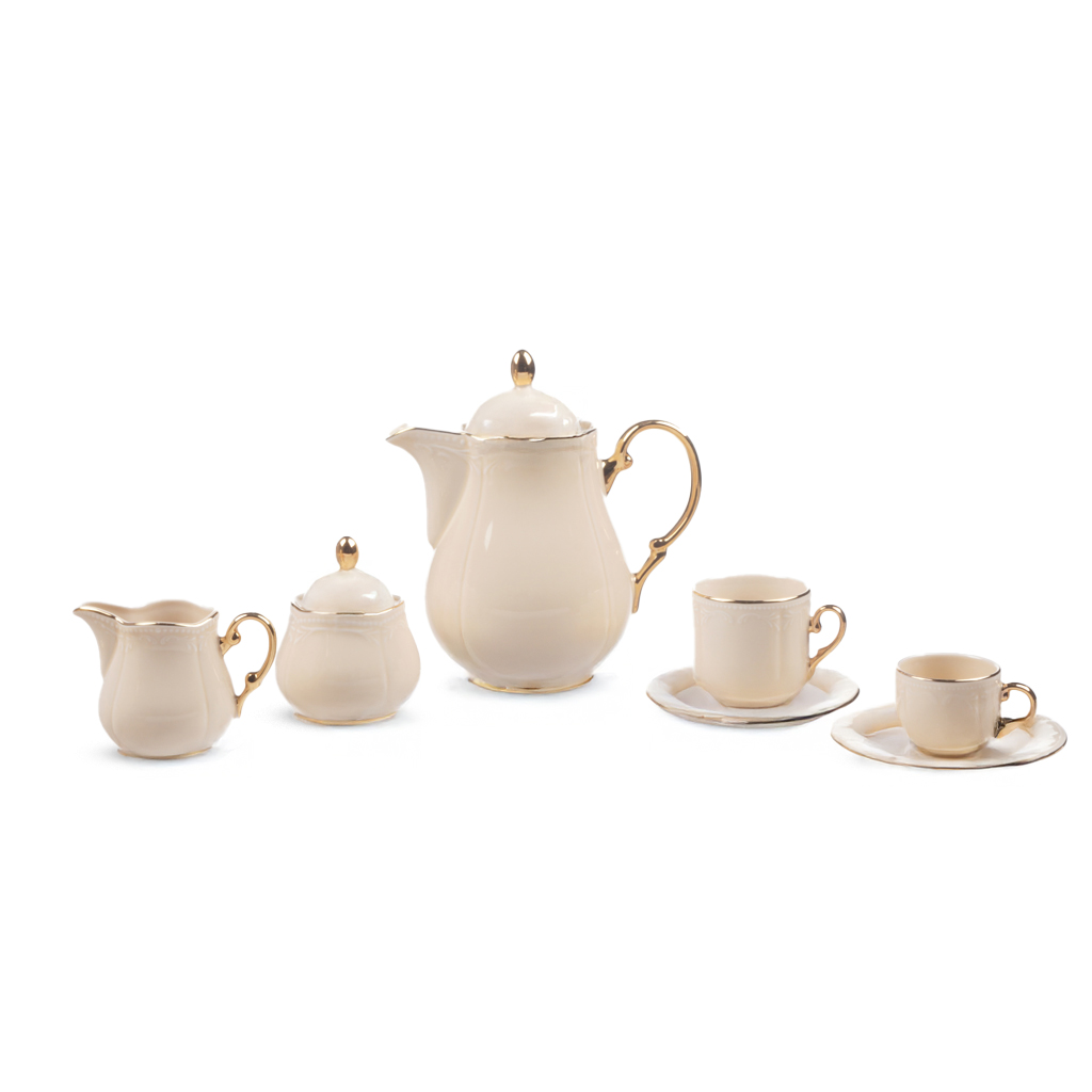 طقم سفرة بورسلين روزا، 57 قطعة - أوف وايت ذهبي | Almorshedy Marts