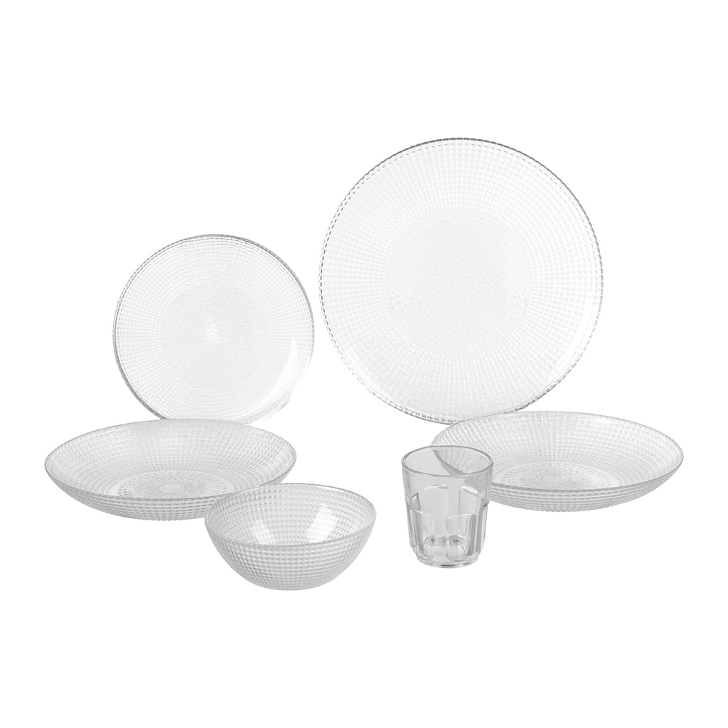 العلامة التجارية: أخرى النوع: أطقم العشاء اللون: شفاف عدد القطع: 60 قطعة الخامة: زجاج يتضمن 60 قطعة : 12 كوب مياه 12طبق مسطح 26 سم 12 طبق مسطح 19 سم 12 طبق عميق 21 سم 12 طبق شوربة 13 سم