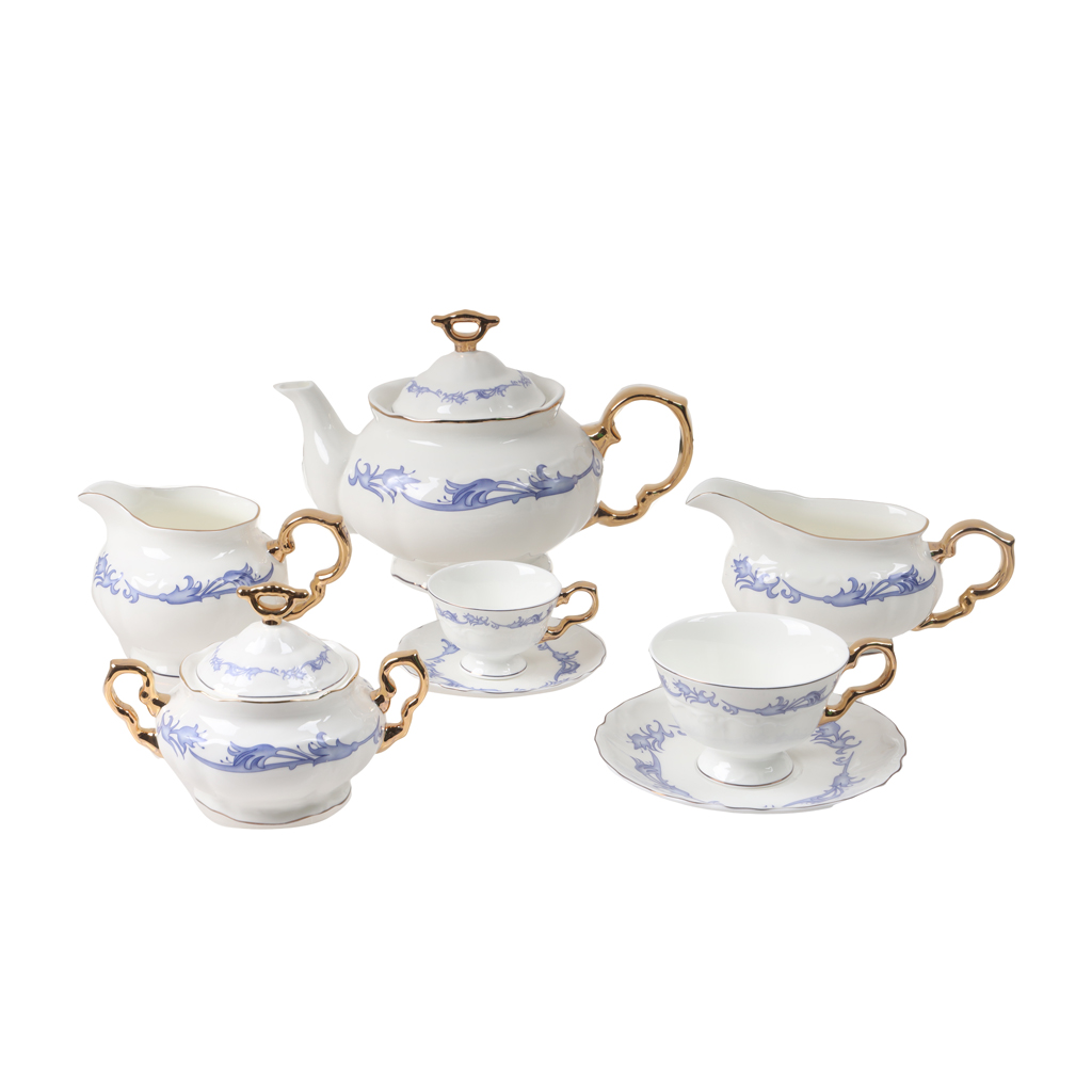 طقم سفرة بورسلين، 125 قطعة - أبيض أزرق | Almorshedy Marts